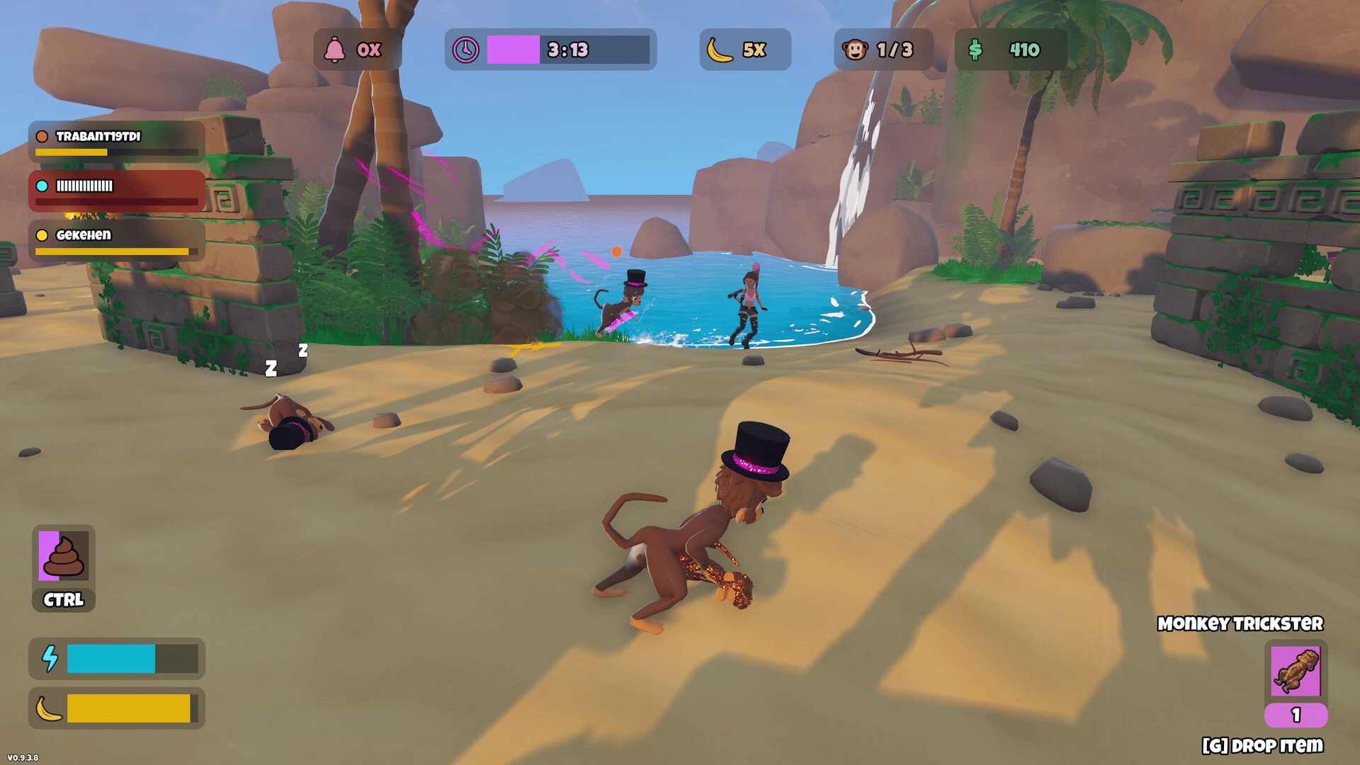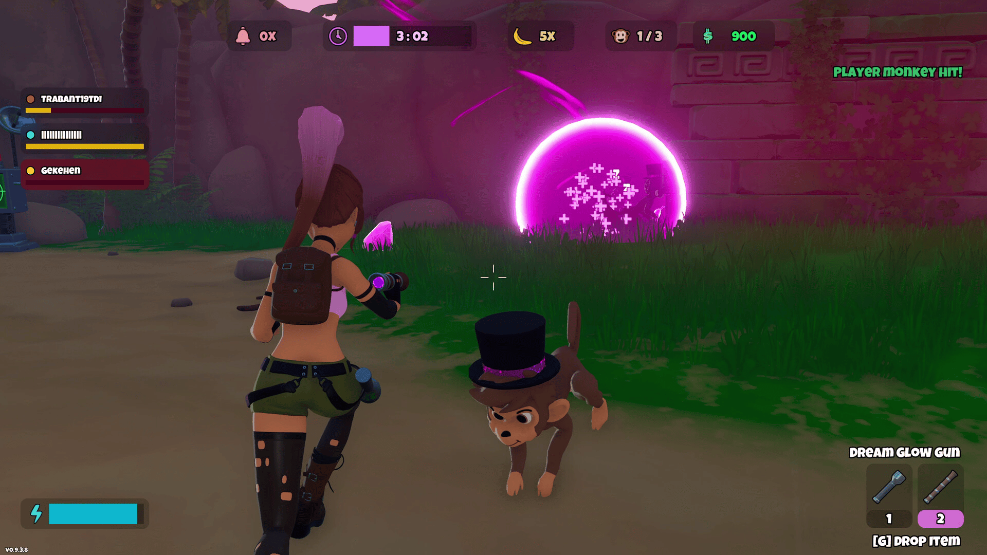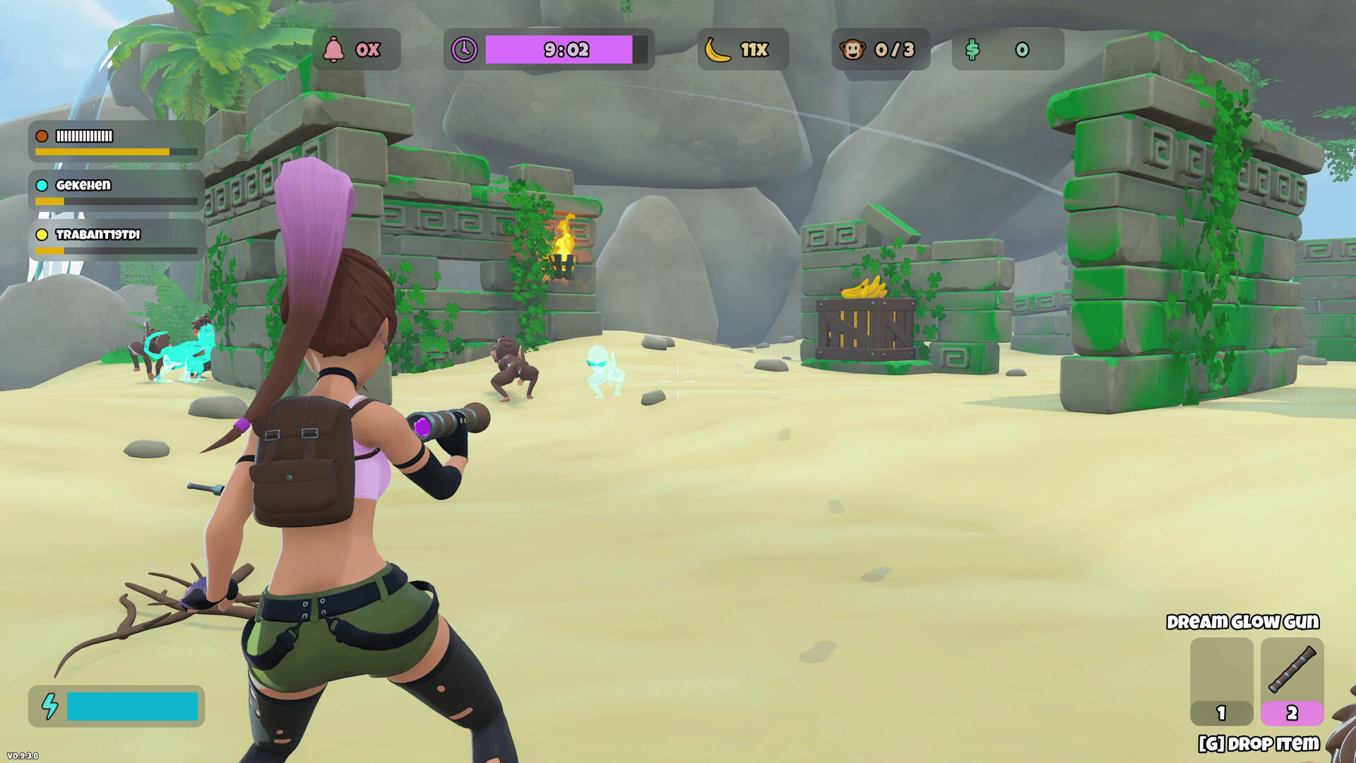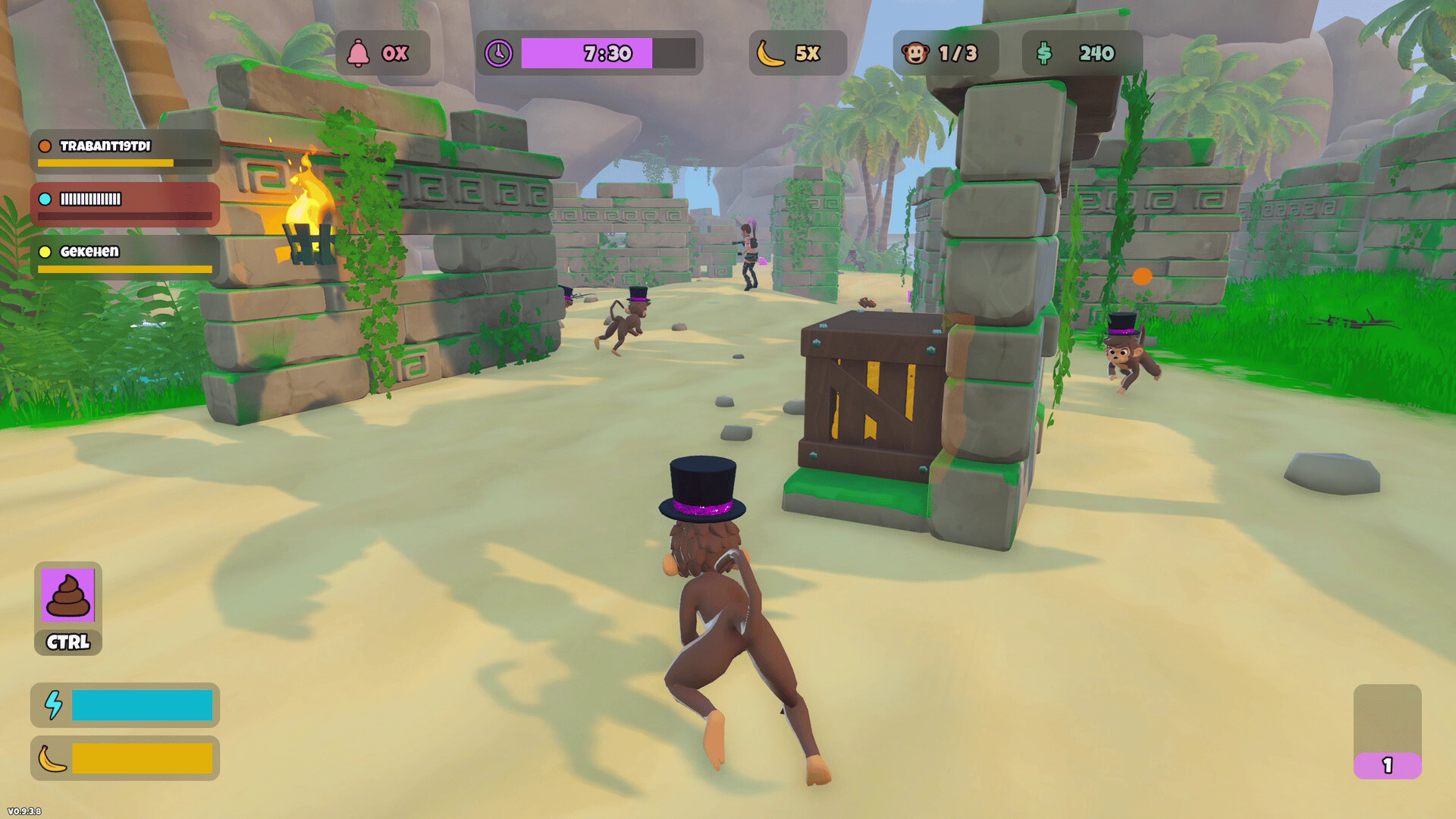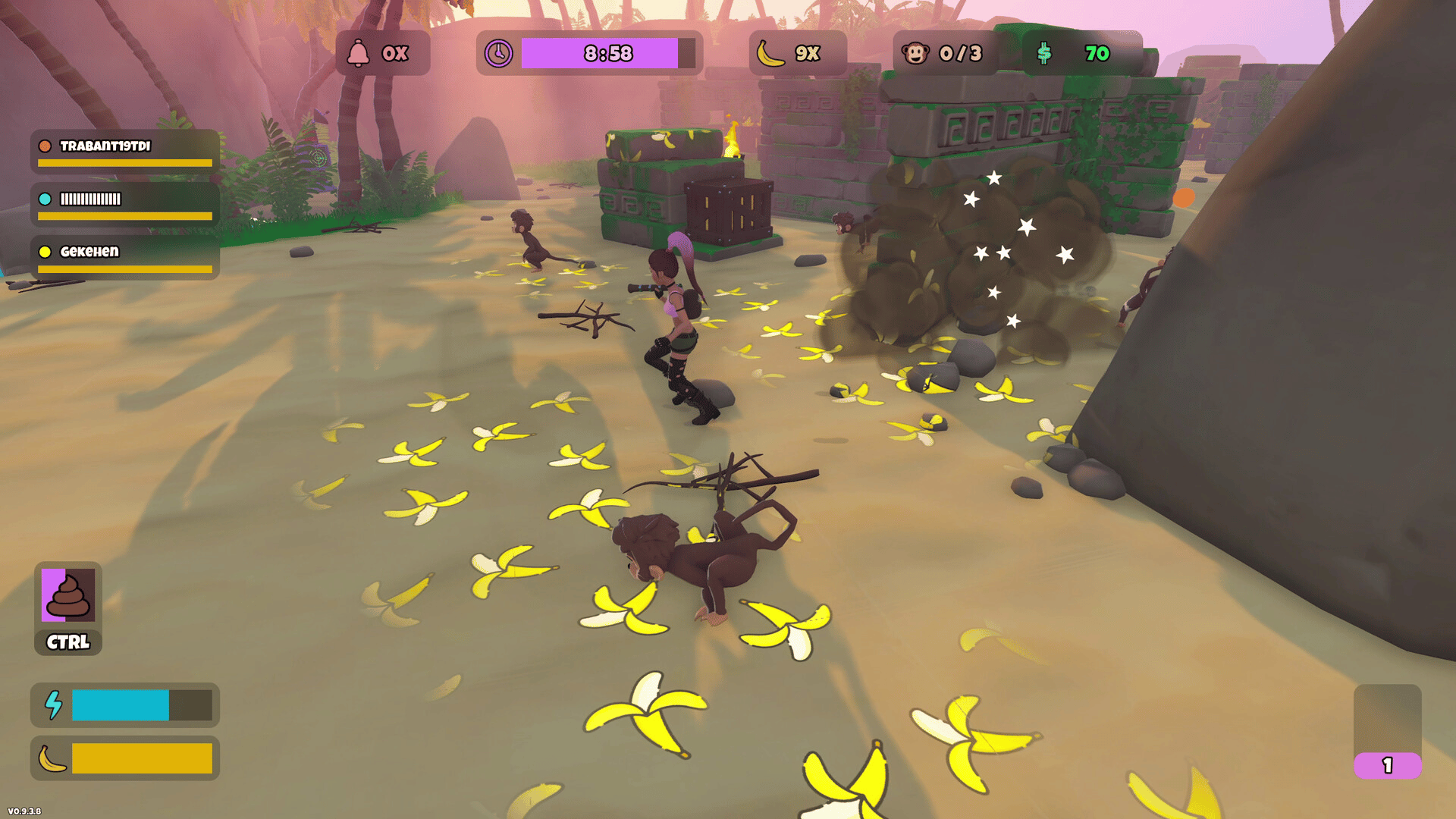 One Banana Keeper, and up to seven friends as Evil Monkeys hiding among NPC monkeys. A multiplayer hide & seek game about blending in, eating bananas, and avoiding being revealed. Will you fool the Banana Keeper or reveal all evil monkeys around NPCs?