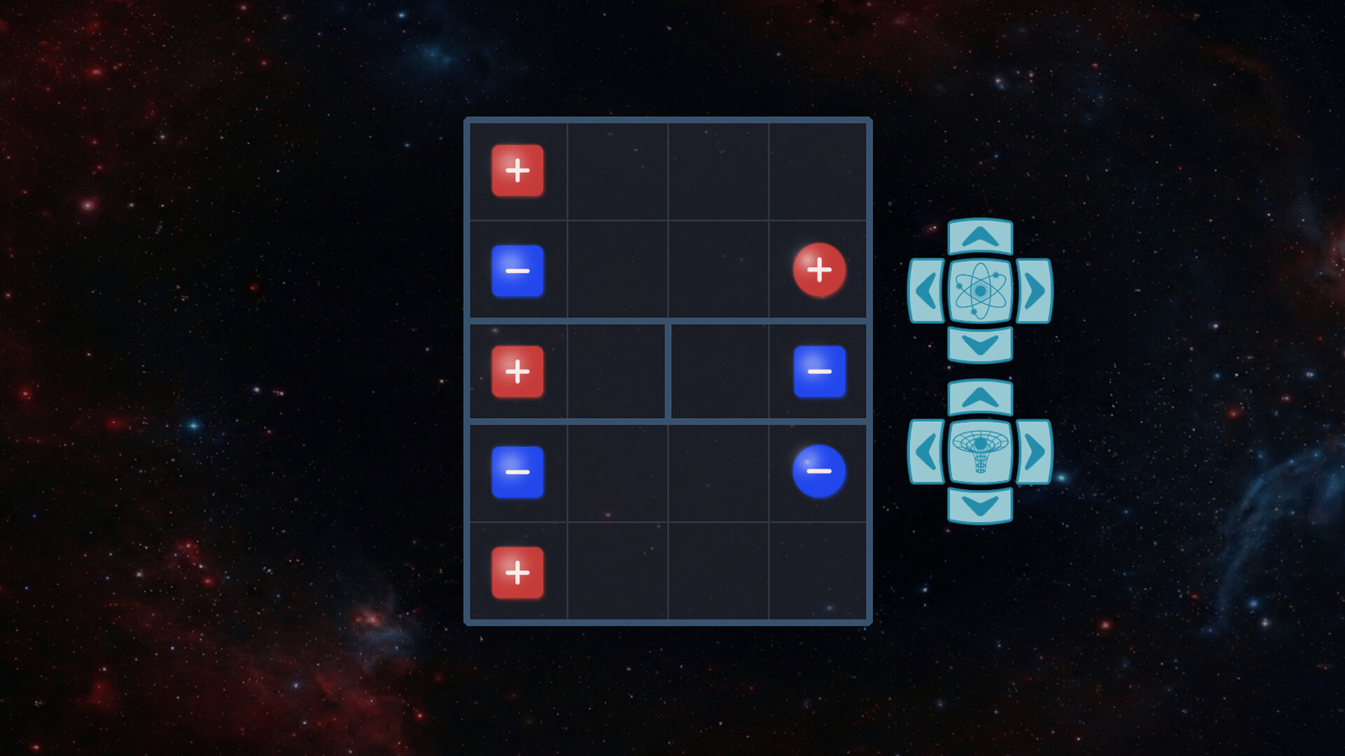 A minimalist physics puzzle. Manipulate electric, magnetic, and gravitational fields to guide charges, matter and anti-matter, and N/S magnetic monopoles across a grid. Collisions trigger annihilation, explosions, or fusion. Clear all particles from the fields.