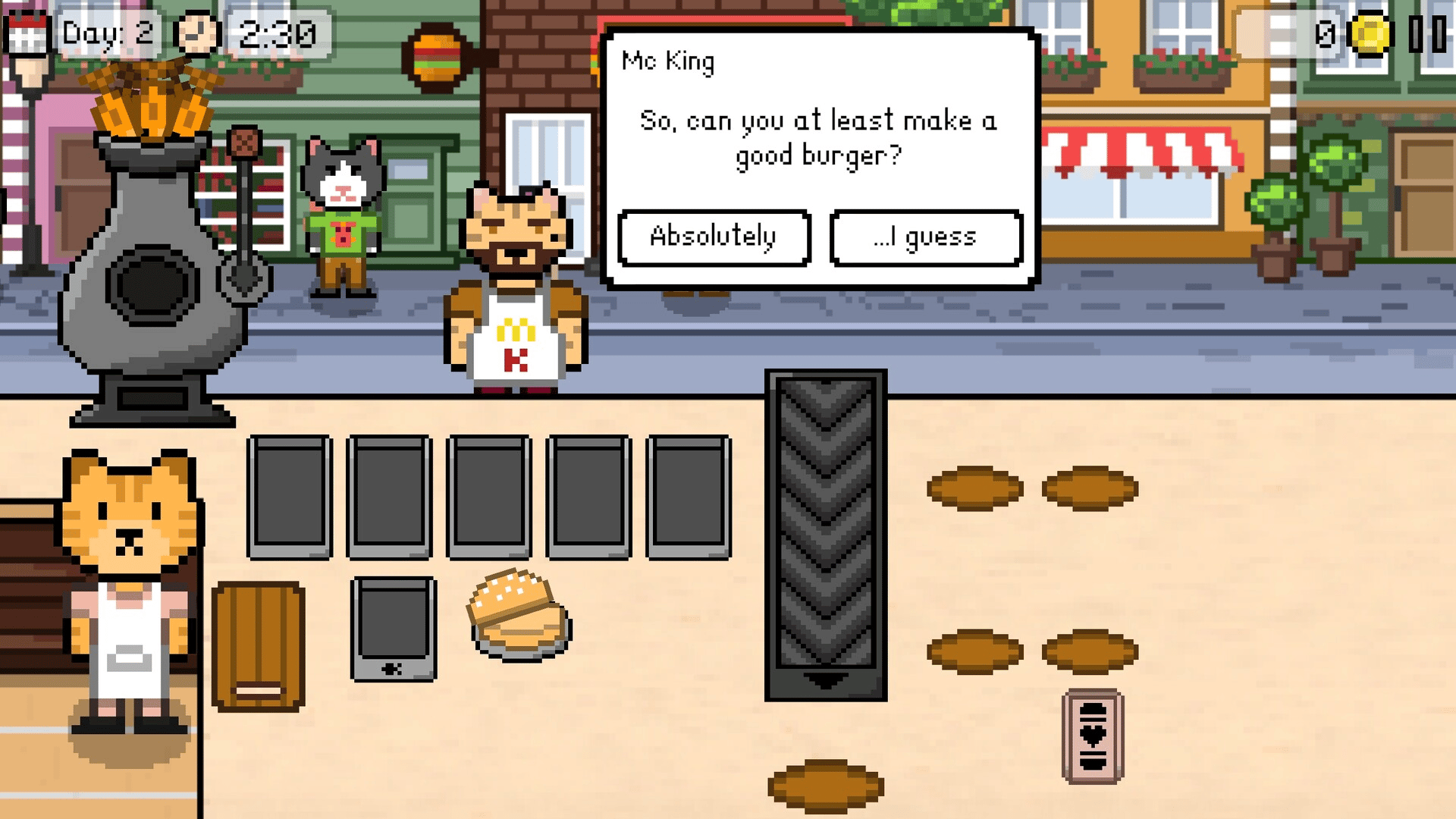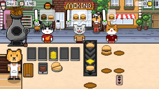 Kitty Burger is a cozy time-management simulation game where you run a burger shop together with your adorable cat assistant! Prepare delicious burgers, serve customers on time, and keep your little restaurant running smoothly. Between busy workdays, you'll meet different characters who visit your shop, each with their own stories, moods, and quirks. How you interact with them will influence the course of the game, unlocking unique story moments and multiple endings that shape the future of your little burger shop.