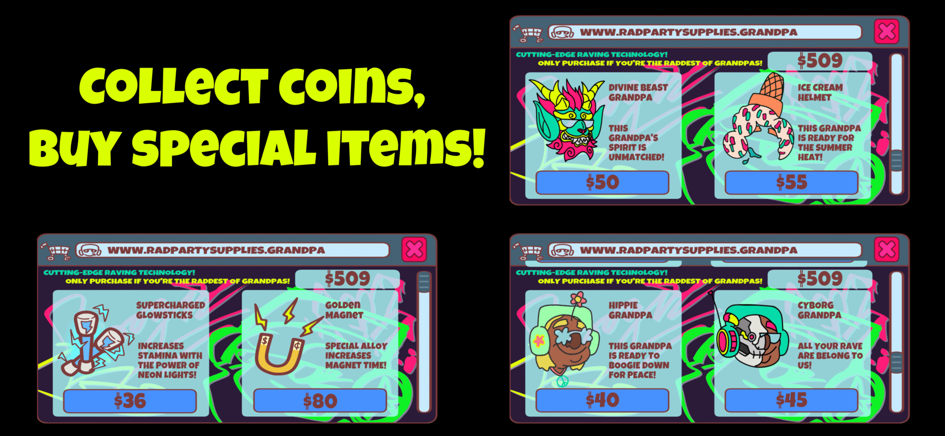 What's stopping this grandpa from going to the party? The answer: nothing. Old age and bones never kept this grandpa from partying! Help grandpa escape the retirement home, dodge nurses, set off fireworks, and slide his way to the big party in this endless runner!