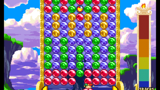 Control a clown to pull in and throw back balloons hurled from the top of the screen. If you line up three or more balloons of the same color in a vertical row, they will burst. If you're not quick enough, the balloons will squash the clown and the game is over. Once you've got the hang of bursting balloons, you'll need to master combos and chains. The third Magical Drop game, first released in 1997, was also developed for the Neo Geo. This games adds representatives for the remaining Tarot Major Arcana, as well as introducing a "daughter" Strength character that more closely resembles the traditional depiction of Strength. The game adds a third button, which allows players to add rows to their field at any time. Additionally, attacks now sends lines to the opponent in non-even rows that vary by character. Hirameki mode is replaced by Adventure Mode, which is a board game that challenges players to reach Empress before CPU-controlled rivals. The English versions of Magical Drop III remove the hardest difficulty setting in Vs. CPU Mode and rival opponents in Adventure Mode.