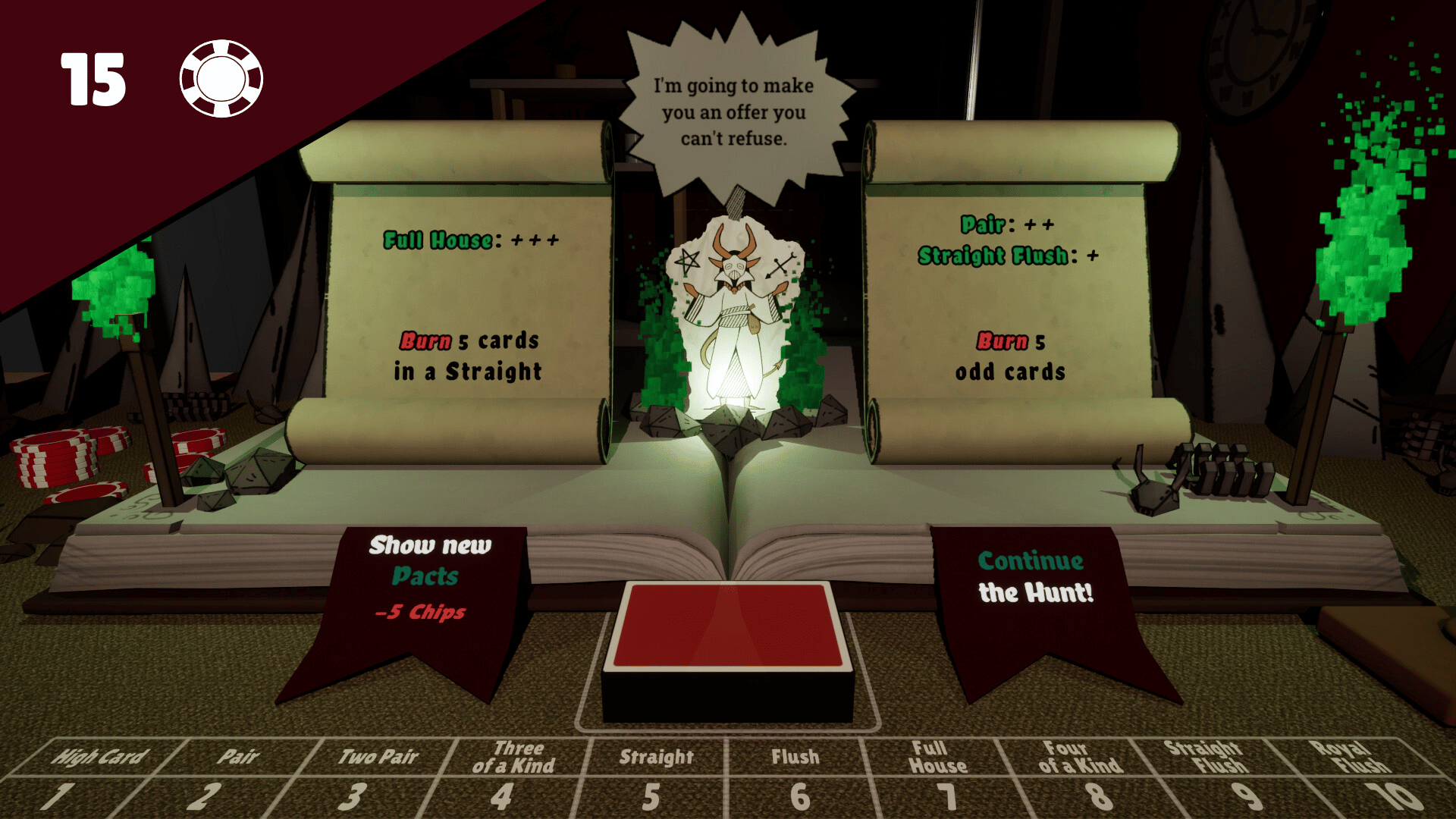 A new take on Poker Roguelike. In Poker Monsters, you assemble poker hands on the table one card at a time, with one goal: hunting! Use your party’s abilities, take down huge beasts and power up to face even greater beasts. Become a true Poker Monster!