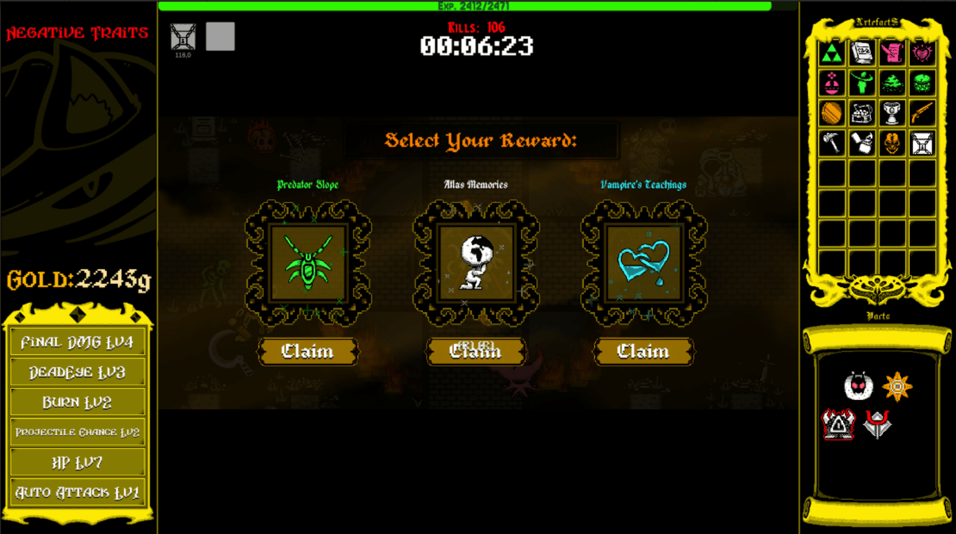 Stop time and master your revolver in this intense 2D roguelike shooter. Face relentless hordes, defeat brutal bosses, forge powerful pacts, and collect artifacts and pets as you fight for survival.