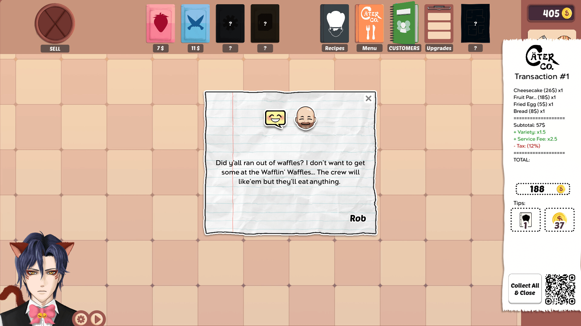 Cater Co. is a kitchen management game where you make food and fulfill your customers' orders. Sit back, earn $$$, buy upgrades and optimize your kitchen.