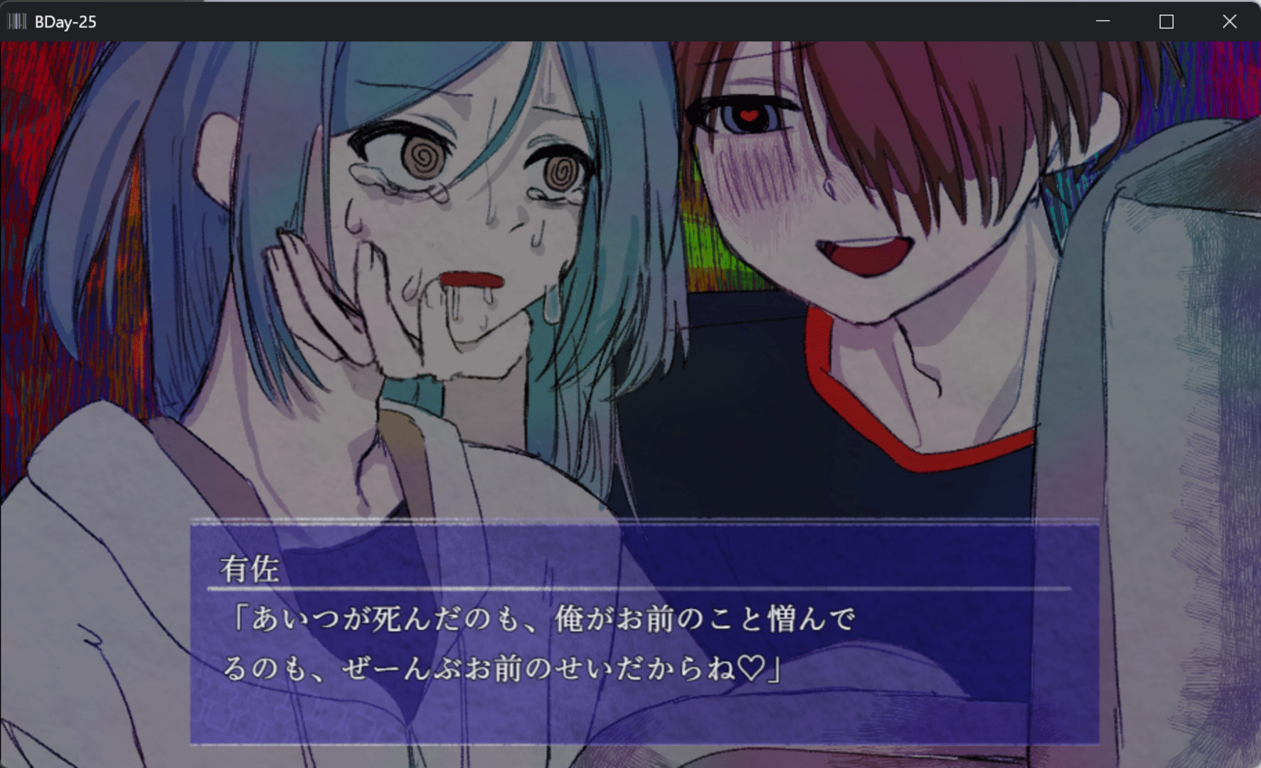 B-Day-25 is an Another World story set in the WithoutEyes series. It tells the story of someone who wanted to save another person, and someone who relied too deeply on that kindness. A destructive brotherhood drama shaped by guilt, blame, and emotional dependence.