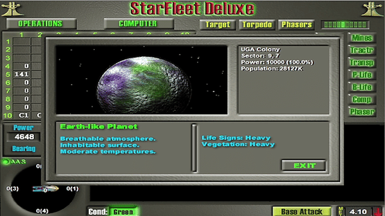 Command a UGA heavy cruiser against the Krellan Empire. Navigate space, manage resources, and coordinate defense strategies. Use starbases and outposts to protect colonies while engaging in tactical ship combat. Your decisions will determine the fate of sectors in this military space simulation.