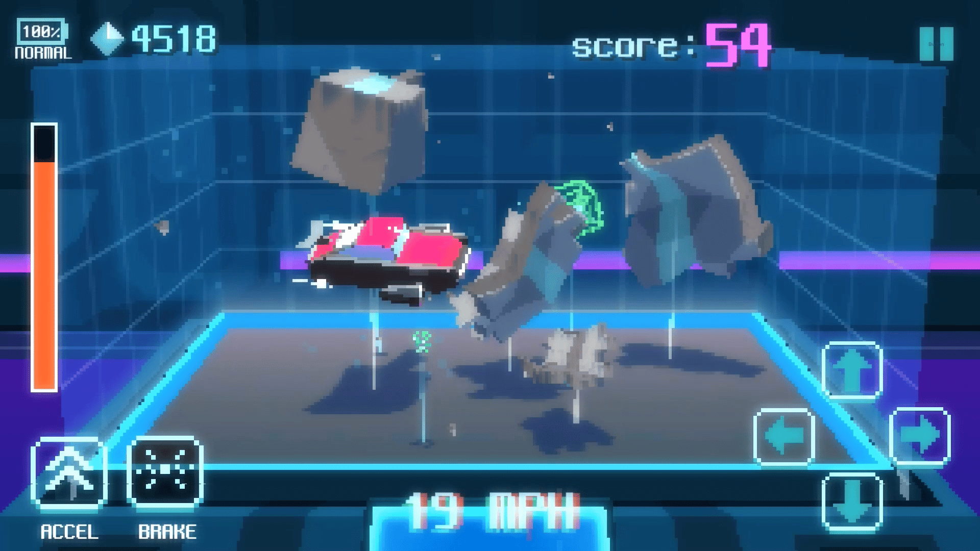 Tabei's spaceship is under fuel leak. Stay focused and control your broken spaceship. Can you collect all the tesseracts avoiding space debris?