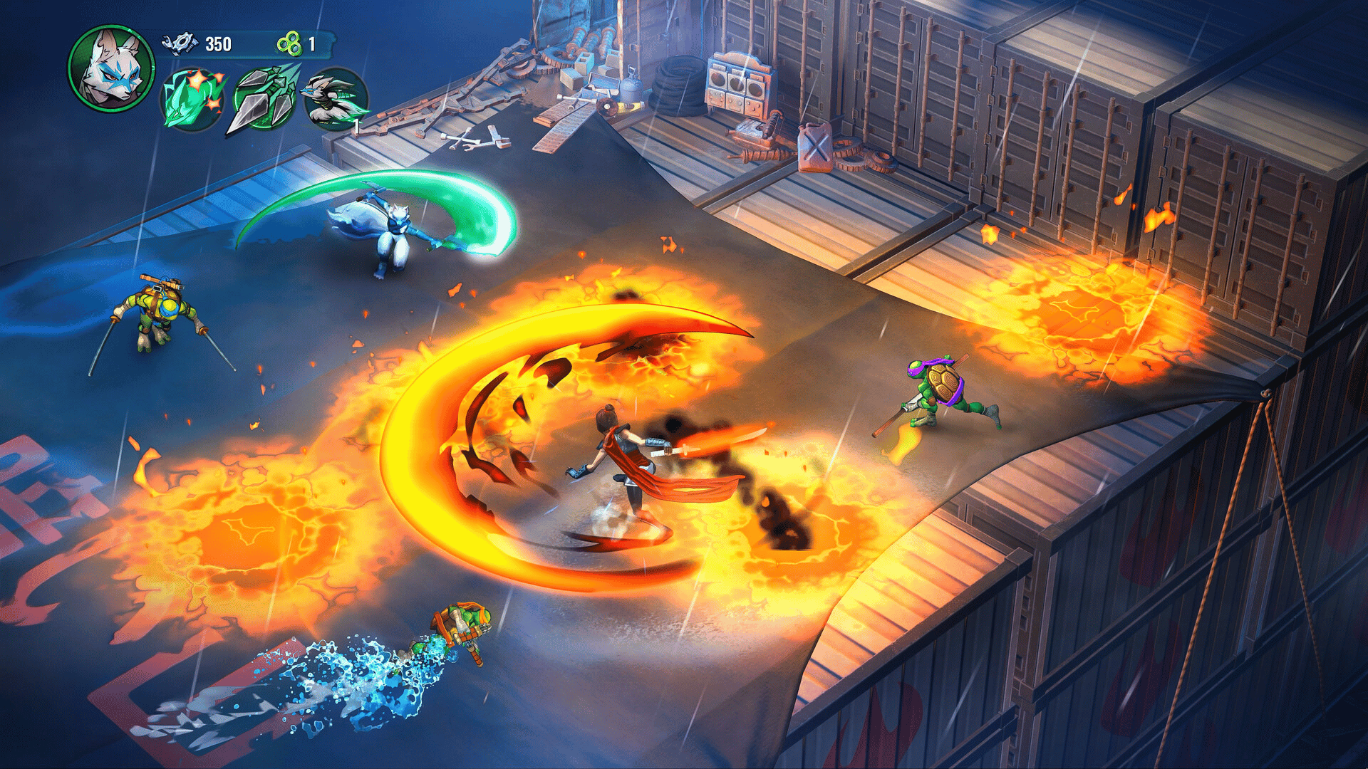 She's ready for action...and to get back at Shredder. Meet Alopex, a mutant arctic fox and ninja assassin who went from being unwaveringly loyal to Shredder to a true friend of the Turtles. Expertly swinging her sickle-like kama, she slices at her foes with ease. Hurling her kunai at close range, she deals a powerful blast of damage. And the best part-- she can briefly become invulnerable while targeting multiple enemies in rapid succession. Ninja powers that modify shuriken also affect her kunai, so try her out with the Ninja, Flame, and Water Powers for maximum impact.