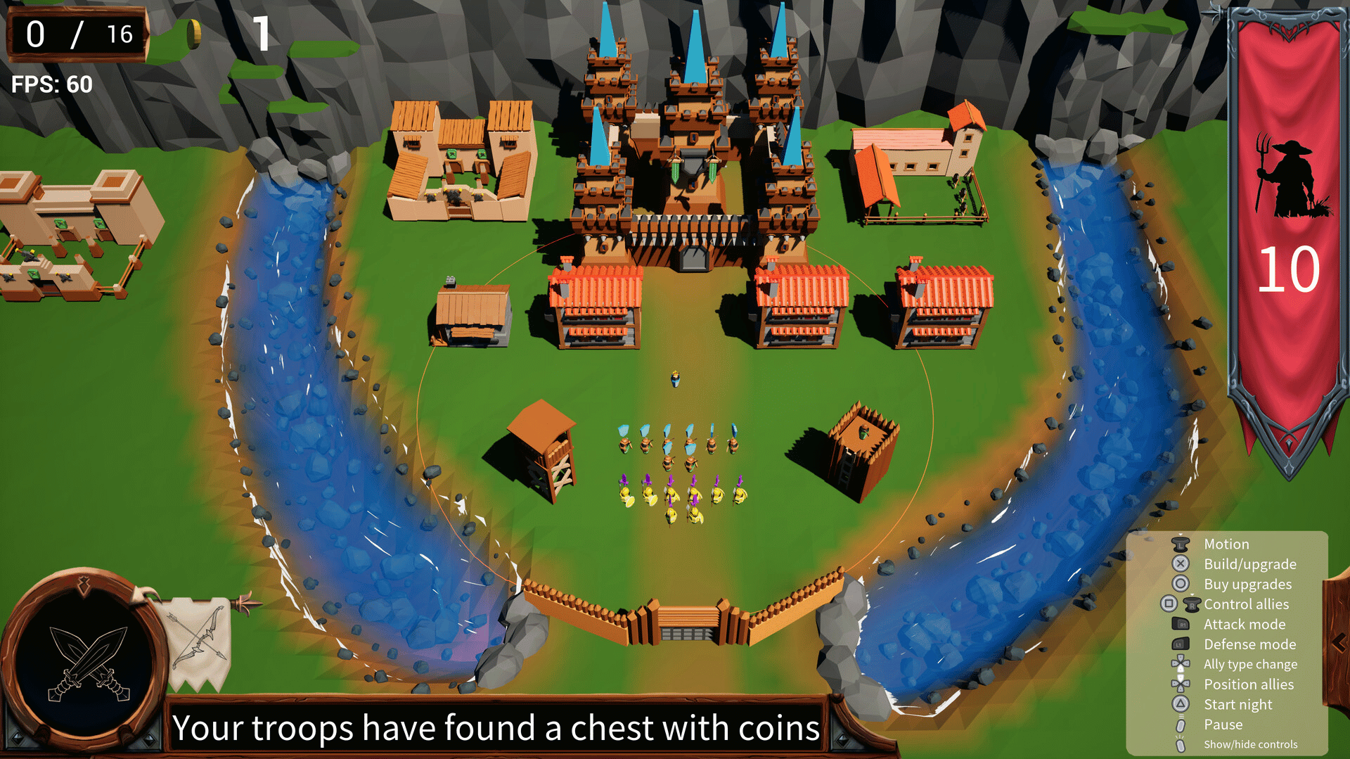 Simple strategy game in which you must build and expand your kingdom while defending it from waves of enemies. You will be able to recruit allies and raise defenses, while adversaries become more numerous and evolve over time.