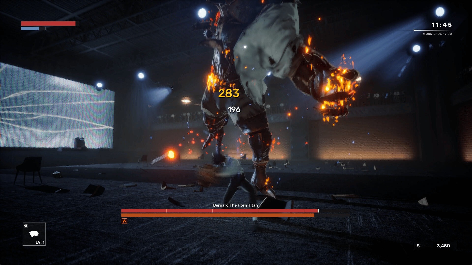 A time-based action roguelike where you battle twisted simulations of your co-workers and climb the corporate ladder before the clock hits 1700.