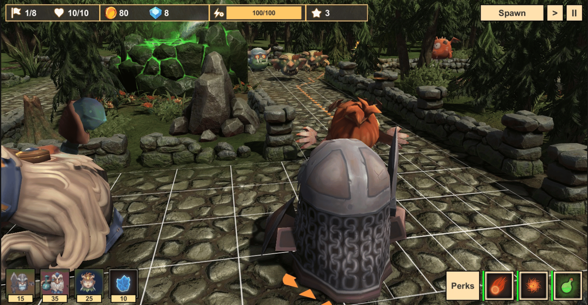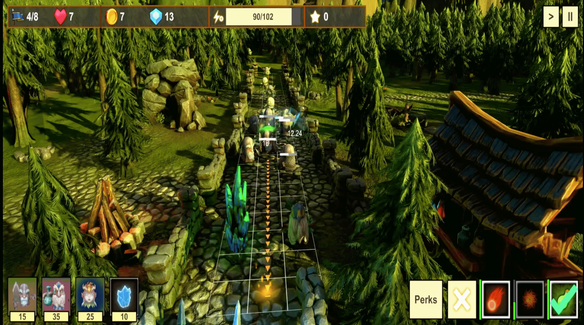 Dangerous Roads is a fantasy tower defense game where players control a party of three heroes to defend trade routes from waves of enemies. Players choose between a knight, wizard, and druid, each with distinct roles and abilities. The game features 9 levels set across different environments, with multiple waves of enemies per level and increasing difficulty. Enemies attack from multiple paths, requiring strategic positioning and decision-making. Players earn and manage gold between waves, with unspent resources carrying over between levels. Characters can be upgraded and enhanced with perks to improve performance and adapt to later challenges. The game focuses on resource management, party composition, and strategic planning as players progress through increasingly difficult encounters.