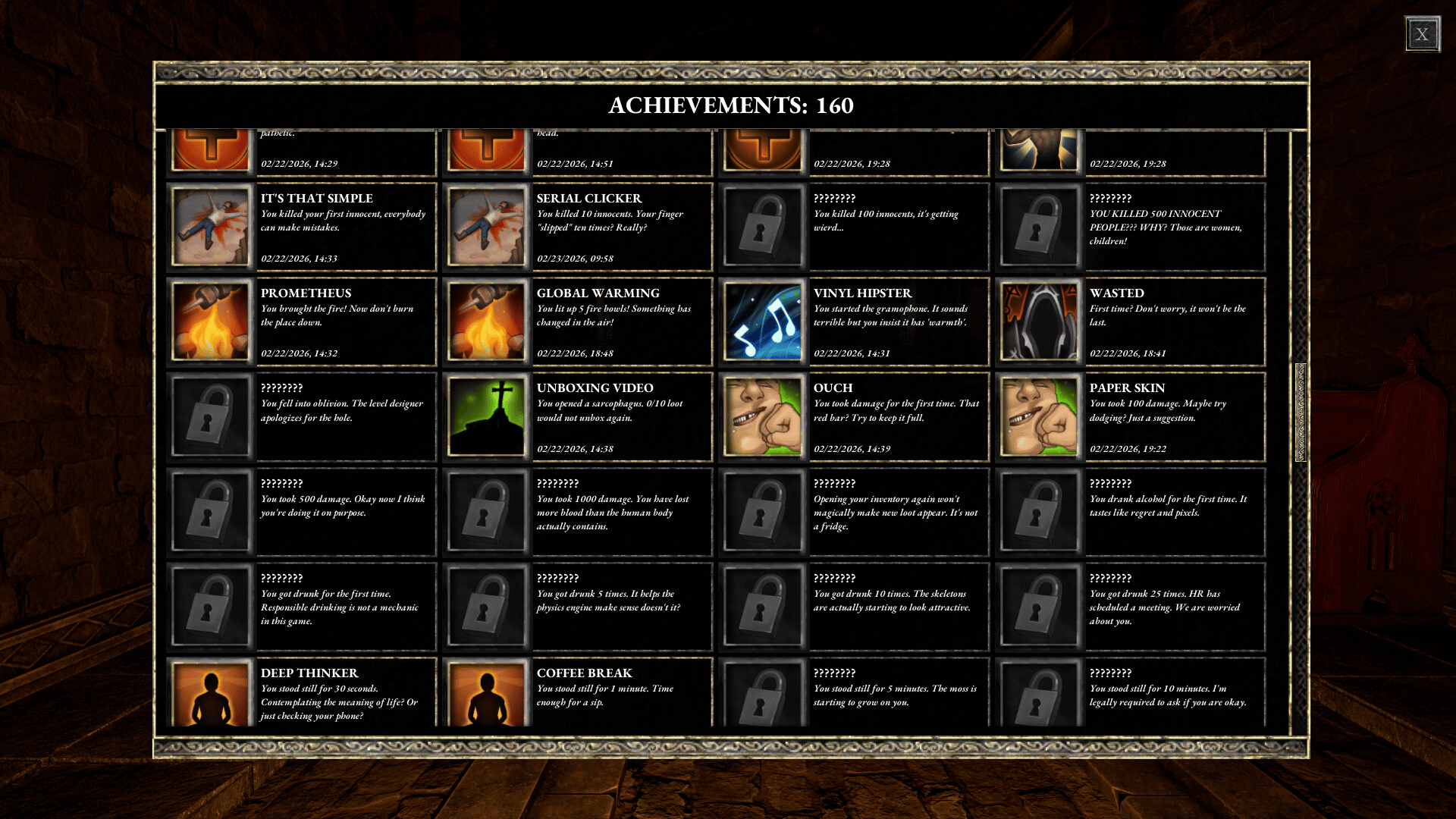 Cut out the annoying "gameplay" and get straight to what matters: making numbers go up. Walk down identical corridors, hoard useless loot, and perform 200 highly specific, stupid tasks just to make a little notification pop up on your screen. Pure achievement satisfaction.