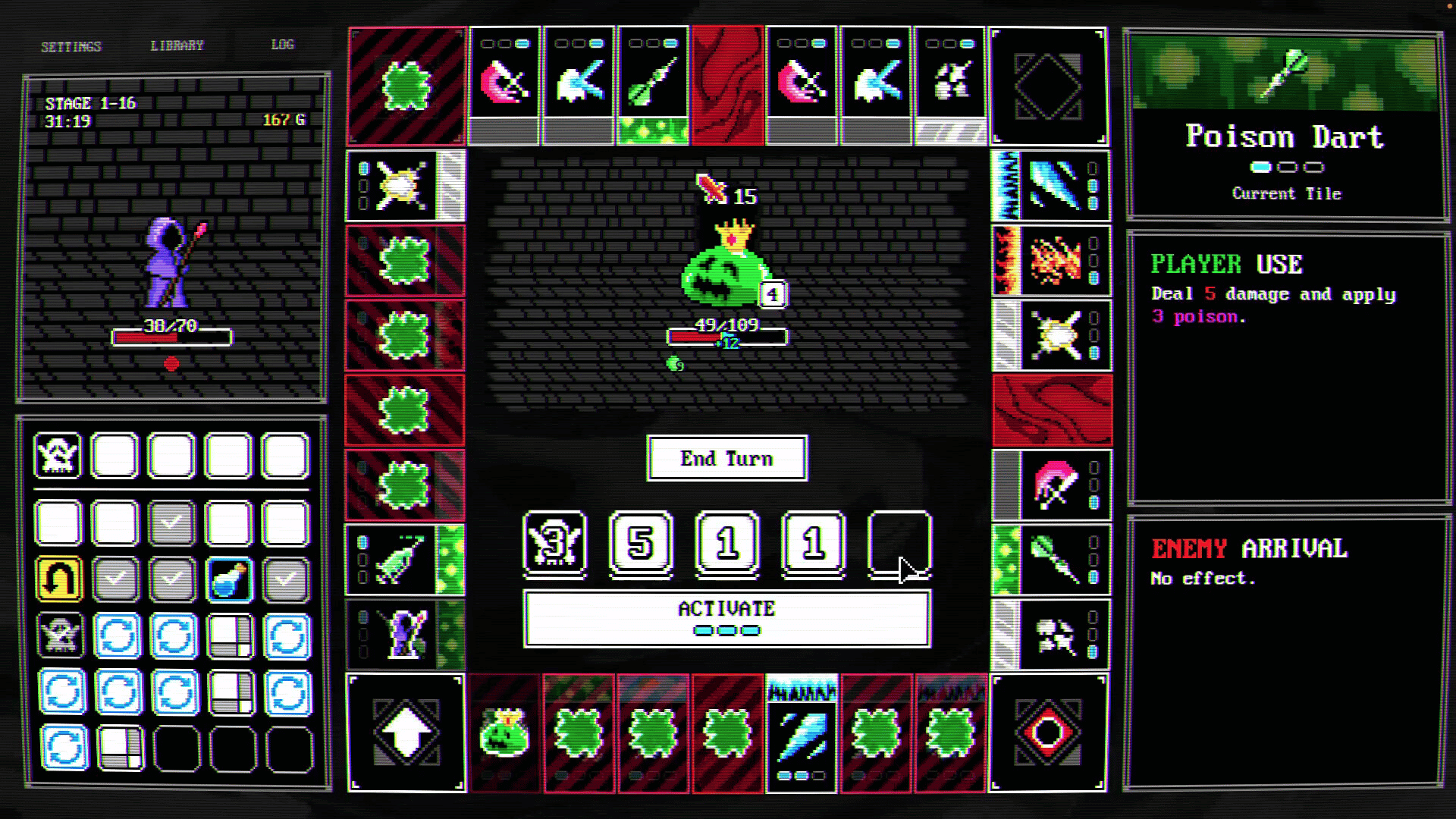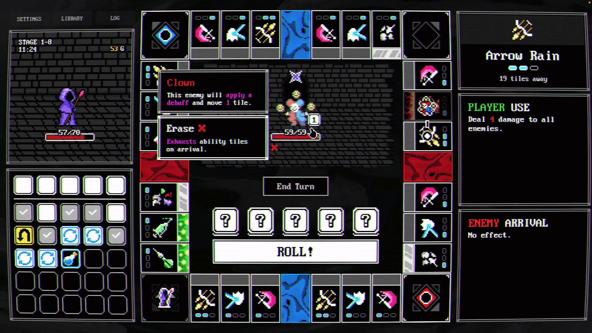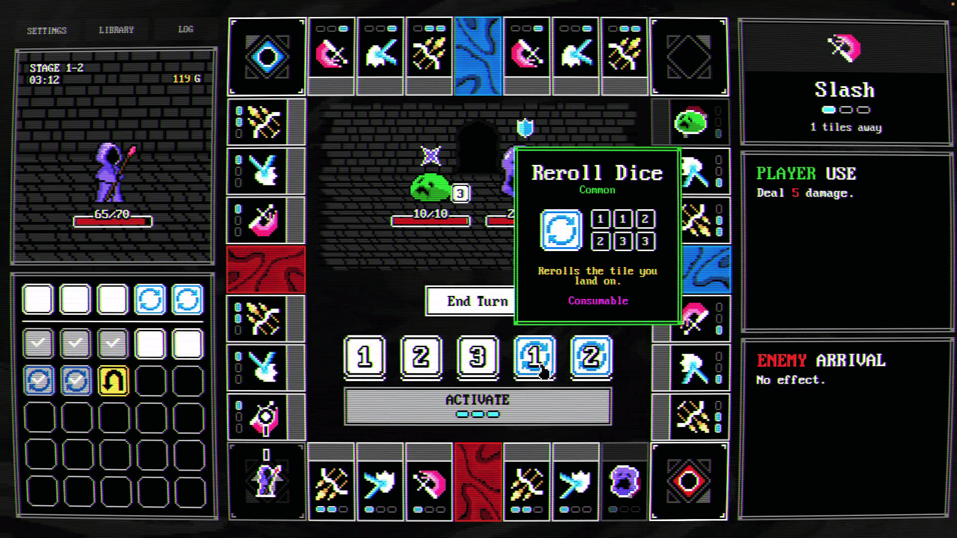 In Boardmancer, your board is your deck! Roll your dice, reroll your ability tiles, and activate abilities as you battle enemies who transform the board into a battlefield in this unique deckbuilding roguelike.