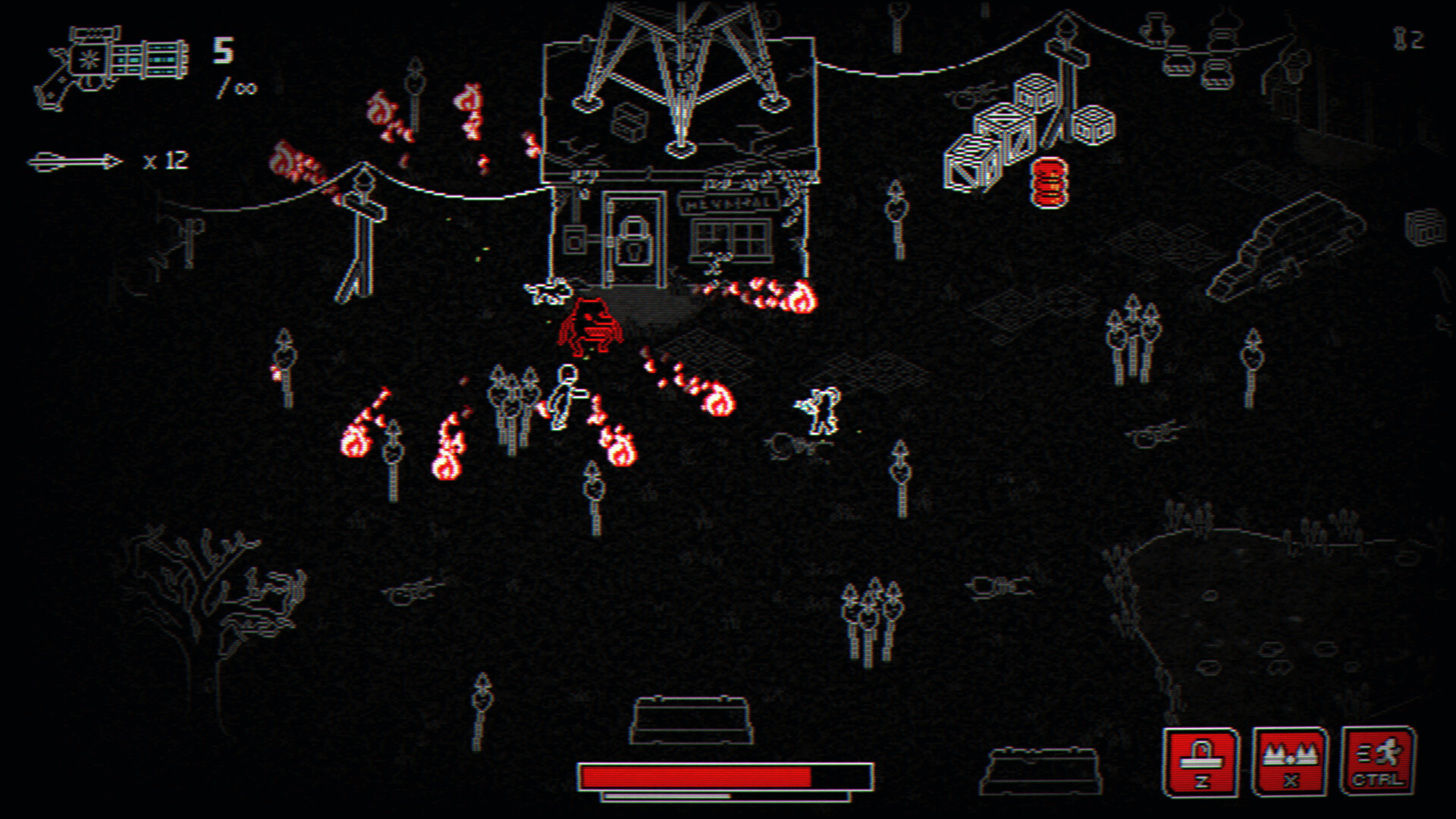 A hellish top-down shooter about a young hero and their dog fighting to save a world overrun by demons, while building a cozy home base for their allies.