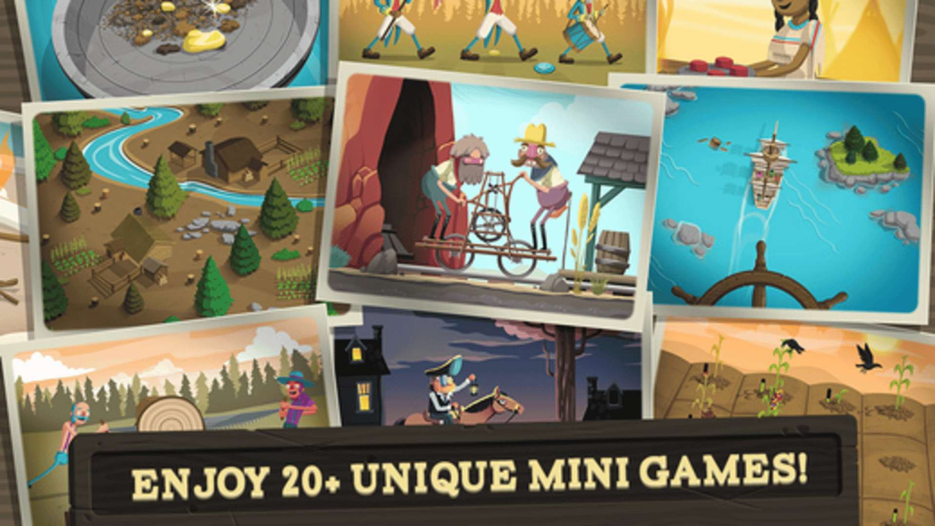 America wasn’t built in a day! Explore five exciting eras of American history through dozens of mini-games and experience what it was like to expand the boundaries of the American frontier. Frontier Heroes tests your smarts, skills, and reflexes as you work your way through an illustrated version of American history, from pre-Colonial days through the California Gold Rush. Collect era-specific challenges to unlock more exciting adventures, and collect Did You Know historical facts to learn mind-blowing facts about the ol' US of A.