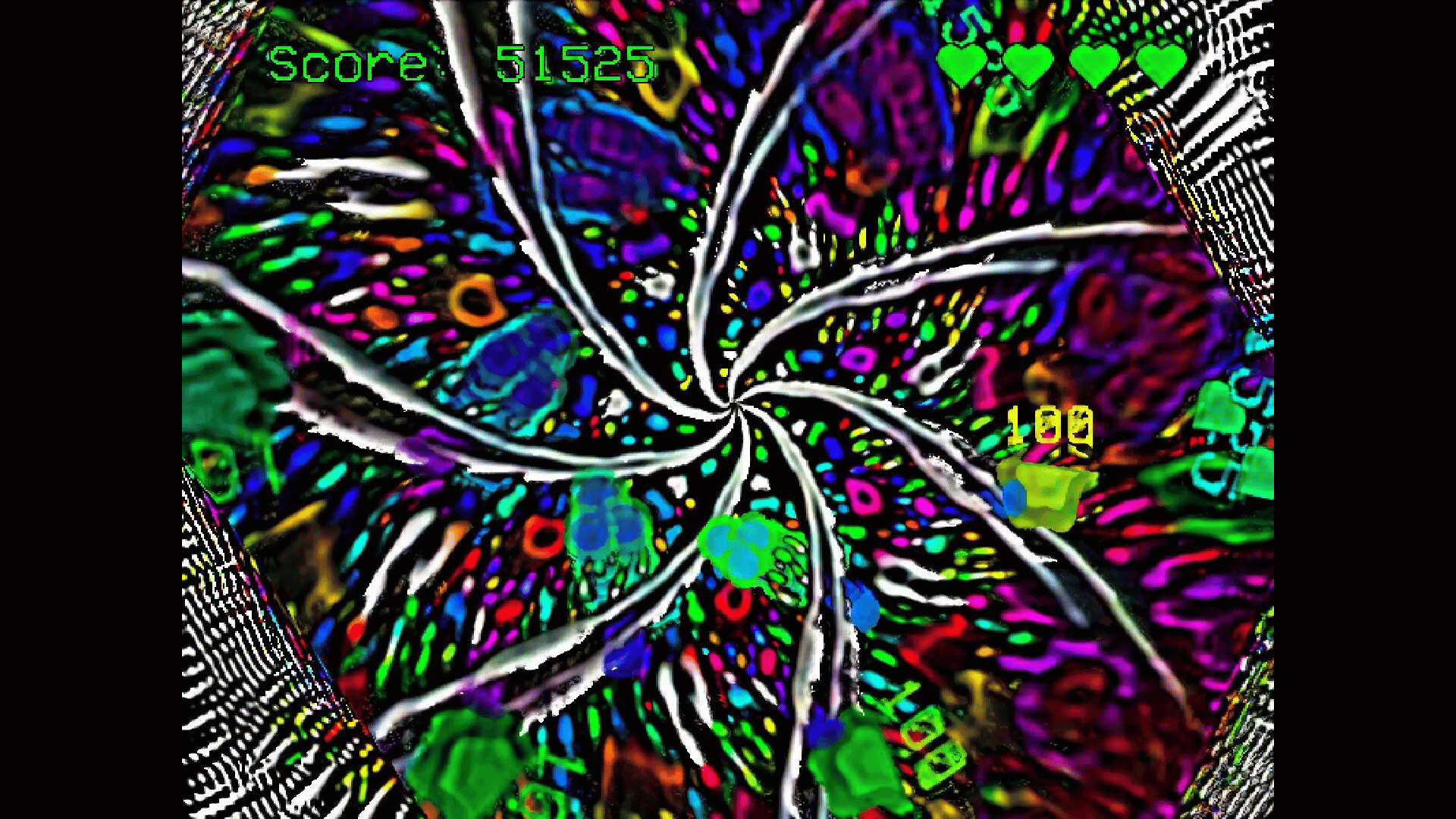 Hypnogenesis is an experimental video feedback bullet hell game in which arcade gameplay is integrated with the controls of a video synthesizer.