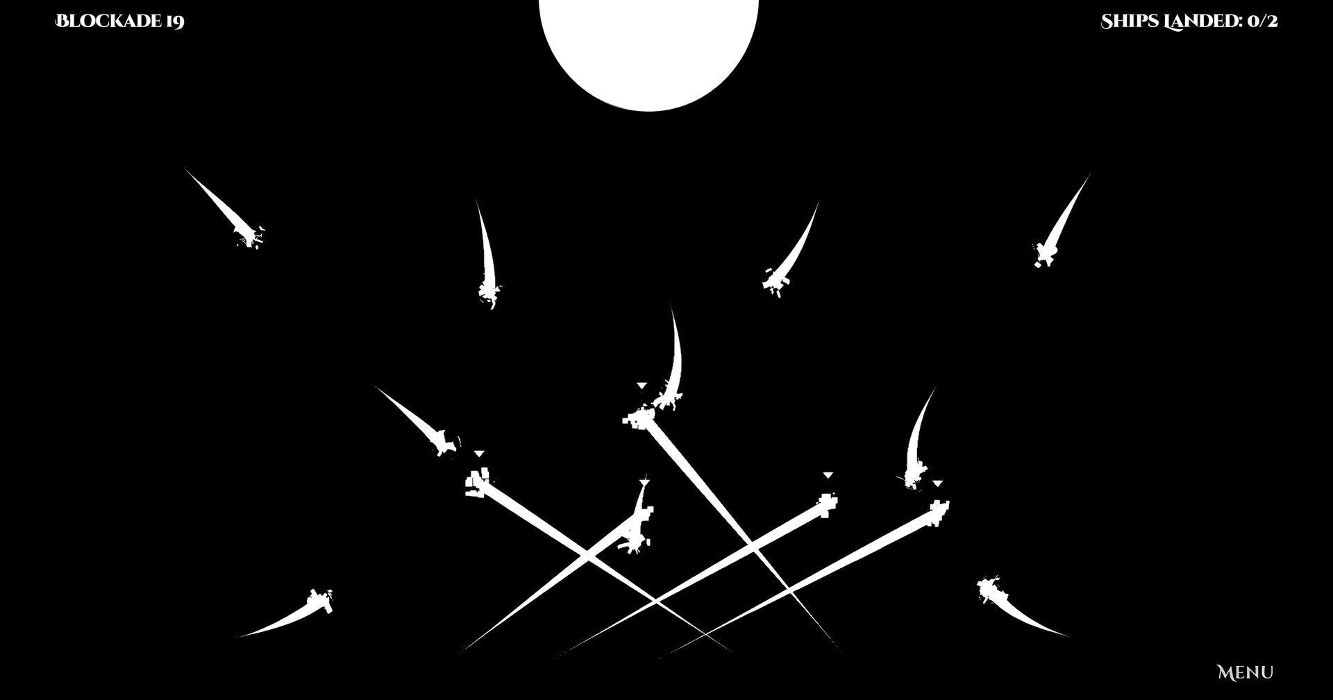 An arcade-style tactics/strategy mini-game set in space. Players pilot a spaceship or a fleet of spaceships and navigate them past a blockade of guard ships so they can arrive safely at their home planet. Players can complete the game's 19 levels in about 1 hour.