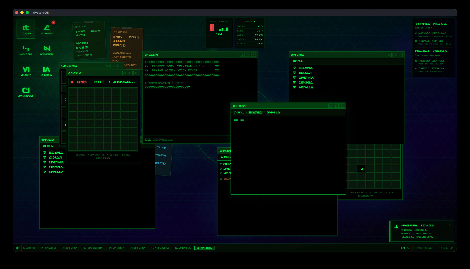 You wake up at a terminal you've never seen before. The language is alien. The interface is hostile. Every wrong click has consequences. Decode constructed languages, navigate unfamiliar operating systems, and survive the unknown in this puzzle-survival experience.