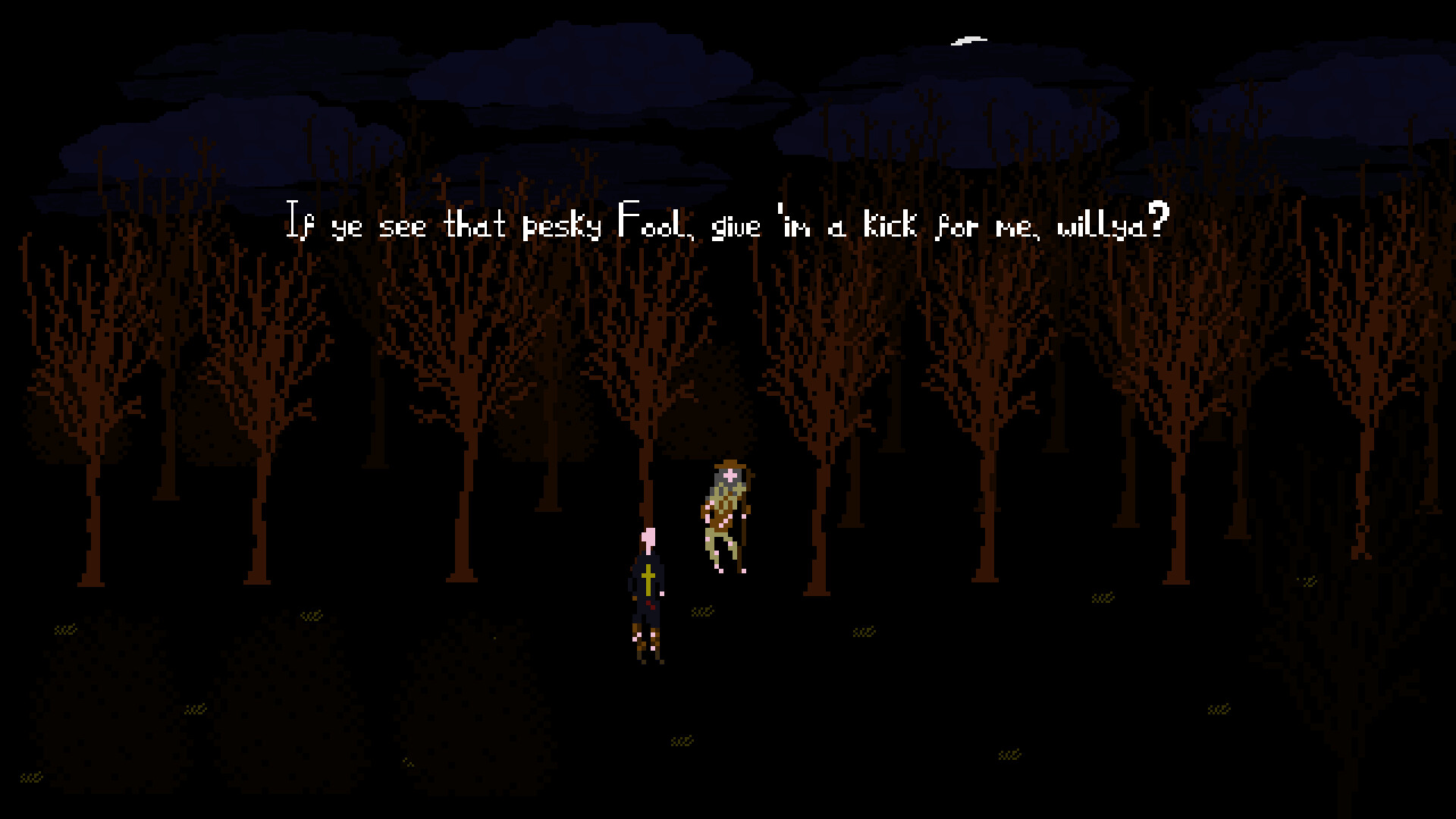 Anomaly horror with a dark fantasy theme. Traverse a cursed forest on a stormy night. If you see signs of witchcraft, turn back... Else you remain trapped on the path for eternity...