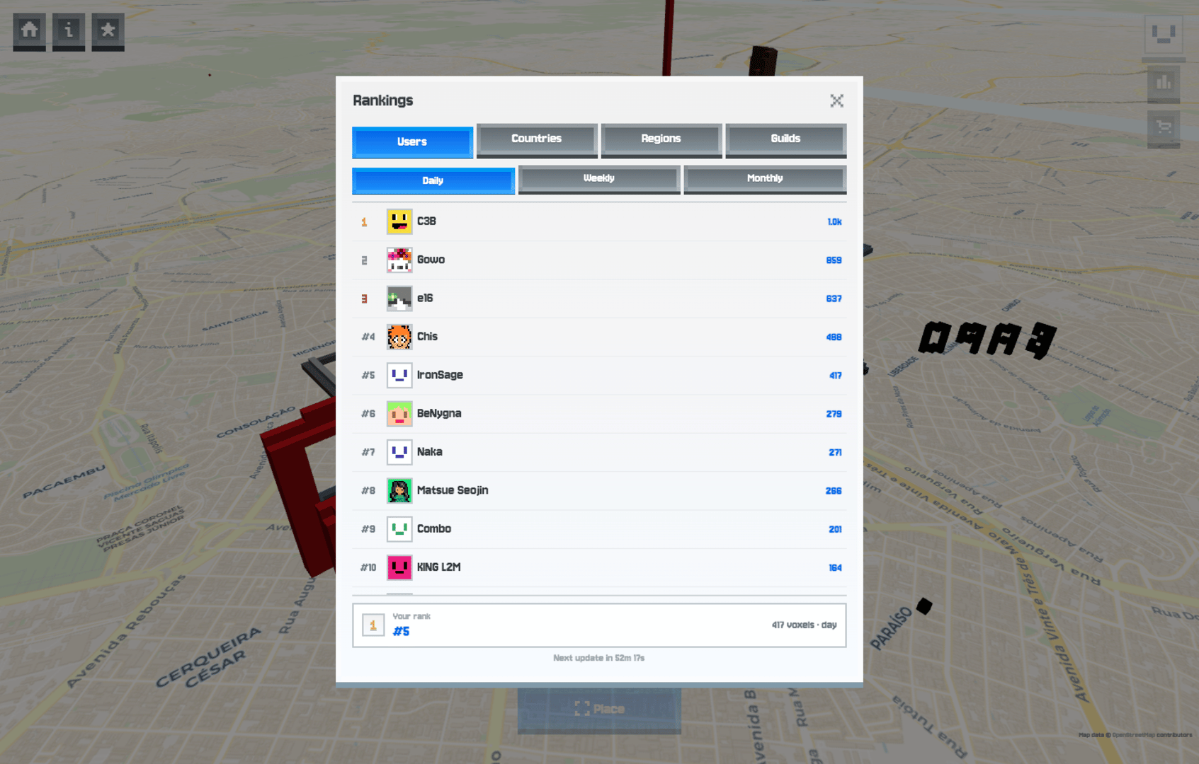 Voxels.Place is a browser-based multiplayer voxel-building game where players around the world place and remove blocks at real geographic coordinates in a shared, persistent world. Combining the creative freedom of a block sandbox with the scale of a global map, it lets anyone contribute to an ever-evolving collective construction. No fixed territories, just blocks as your presence and expression in the world.
