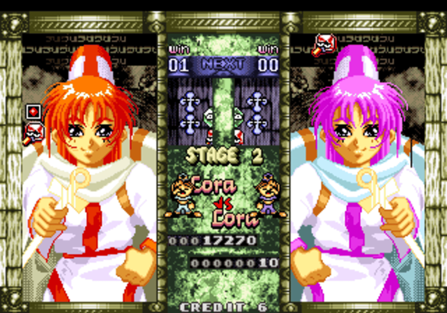 An adventure puzzle game similar to Puyo Puyo. The player must combine falling blocks. Longer combinations create additional blocks in opponents screen.