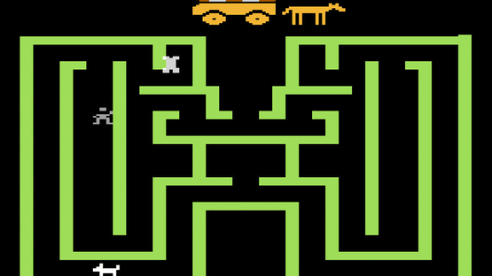 In the 80's, the popular commercial for Purina dog food included a dog chasing a tiny chuckwagon across the kitchen floor. Inspired by this, Chase the Chuckwagon was produced by Spectravision and released as a promotional item from the Ralston Purina Company. Buy lots of dog food and you could own this. The simple rarity of this game combined with its historical coolness makes it one of the "holy grail" games. The object is to navigate the dog through a maze in an effort to reach the chuckwagon, while avoiding the dog catcher and other obstacles. If he makes it, an animation shows the dog chasing after the chuckwagon and stopping to eat the dog food that falls out of it.