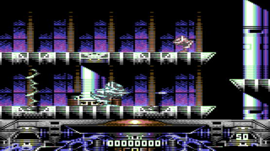 In Clystron you control a walker-like cyborg on its mission to find eight machine parts. The parts must be collected in the correct order. Whenever a part is found, a new transporter destination is unlocked. All parts must be found within a time limit of 15 minutes in order to complete the game. The game is a very basic platformer with rather weired controls. You can only shoot or jump while walking. Moreover, you keep walking in one direction until you press the joystick down, which feels very odd in the beginning and makes the game quite hard to play. Clystron was originally released for the C64 and later ported to the Commodore Amiga. Especially the C64 version was lauded for its great music and graphics.