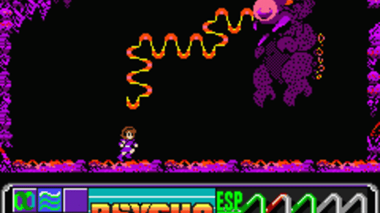 A scientist and his two female assistants work on ESP research in a remote science laboratory. One day, a section of the lab blows up. It turned out that the monsters kept for experiments escaped and took one of the assistants with them. The scientist gives an "ESP booster" to the remaining assistant so she can go rescue her. Your character possesses psychic power which she uses to blast away her enemies. You start the game with few powers and eventually gain more as items dropped by monsters are picked up. You control powers such as fire, ice, sonic waves, temporary invincibility, levitation, and more.