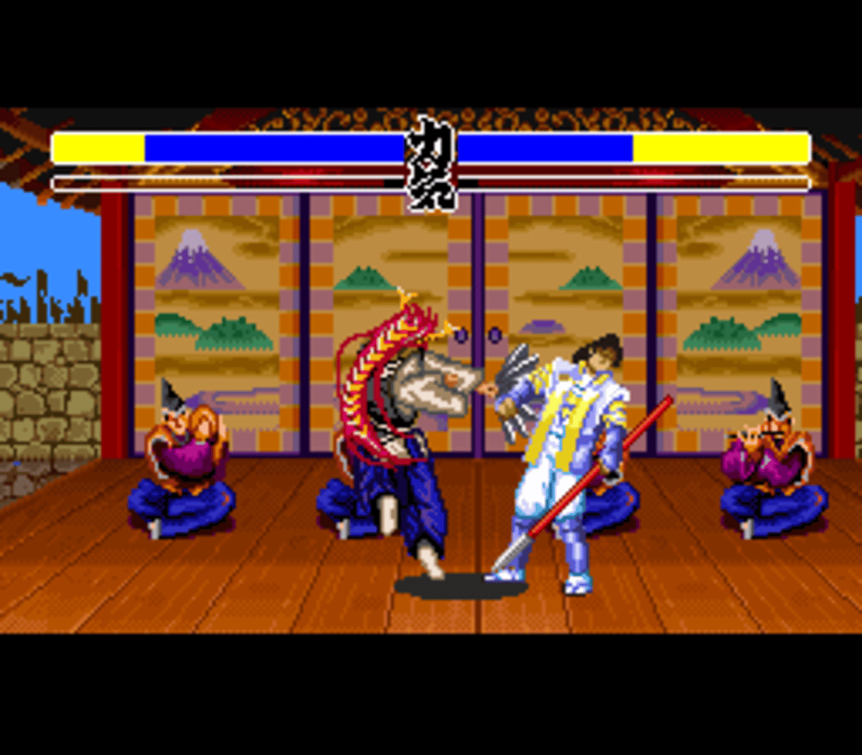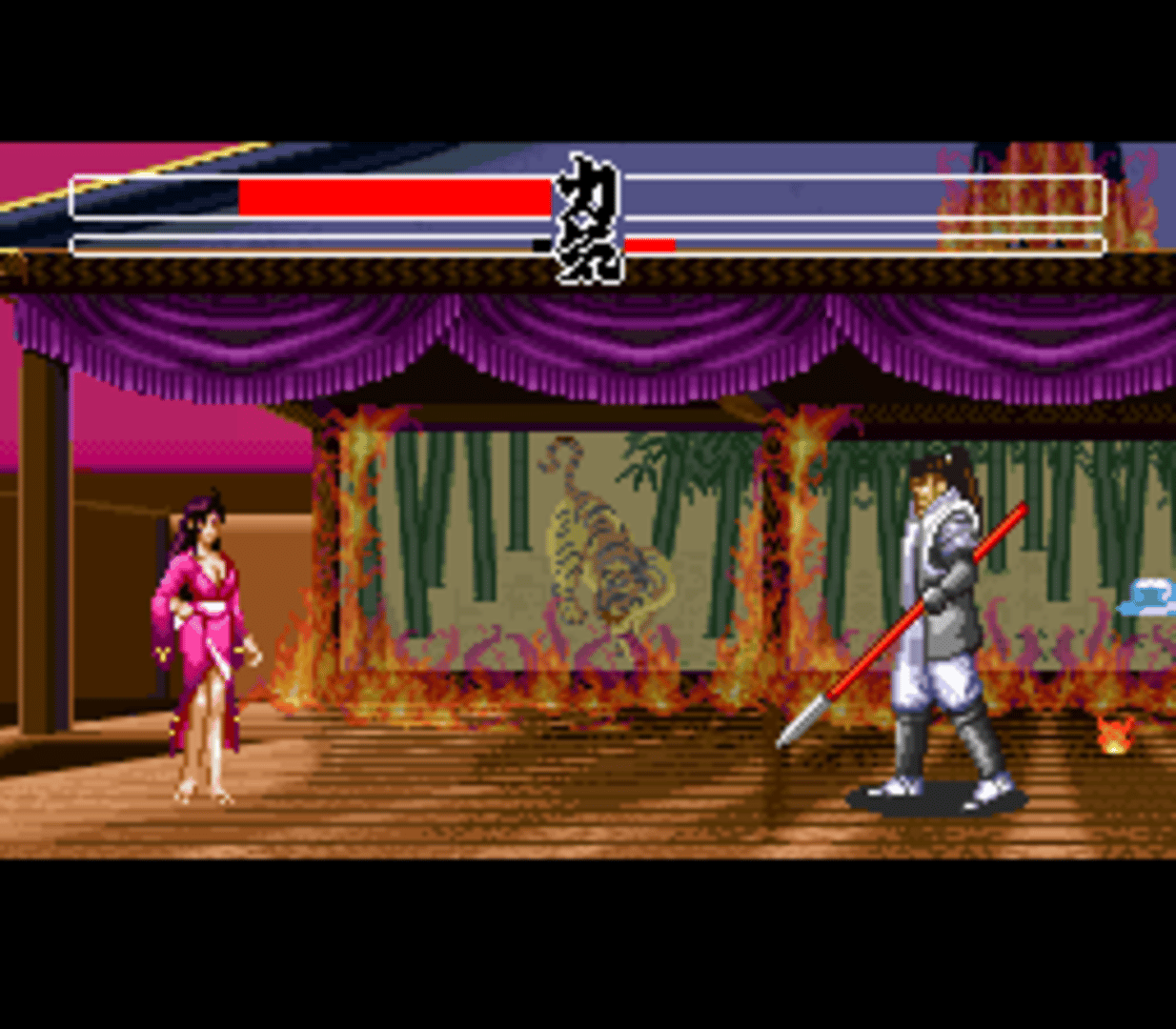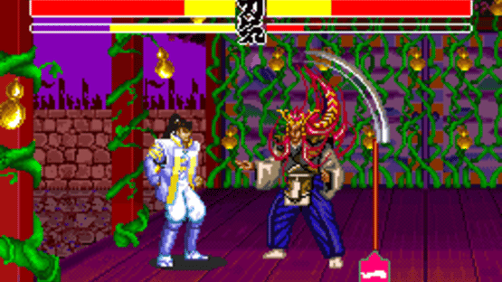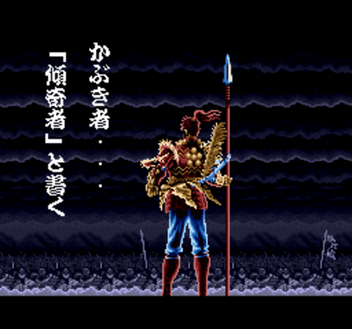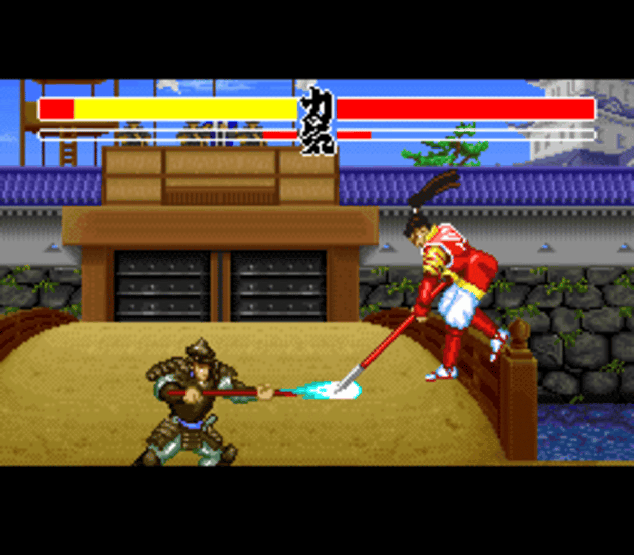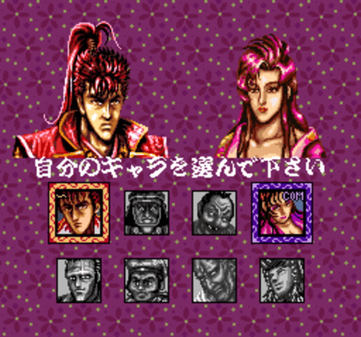 Hana no Keiji: Kumo no Kanata ni is a weapon-based versus fighting game based on the manga of the same title (created by Tetsuo Hara). There are two playable modes, in one you can follow the manga story, while in other you can fight against the computer or player two. There are eight different characters and scenarios to choose from. When following the manga story, there are different paths depending on the choice that the player makes. The most significant thing about the versus battle is that the characters can lose their weapons as much as recover them. Also, a special trick can be executed when the player has enough energy.
