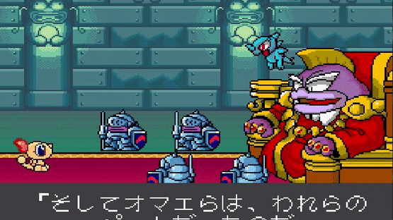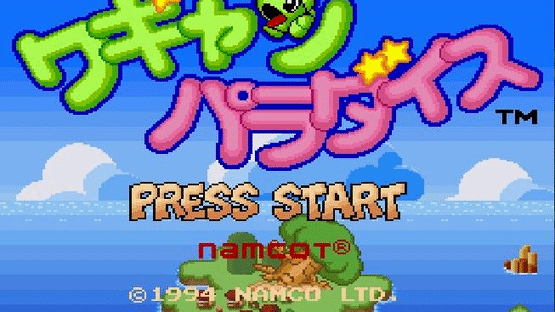 Wagyan Paradise is the third Wagyan Land game for the Super Famicom and the sixth game in the series overall. It features two new "Wagyan" dinosaur protagonists who alternate between stages: Takuto (a green male Wagyan) and Karin (a pink female Wagyan). Wagyan Paradise introduces a brand new array of post-level mini-games, a staple of the series, and adds more story cutscenes which help explain what's going on with the various incidents happening to Takuto's and Karin's island home. It also has a new art style.