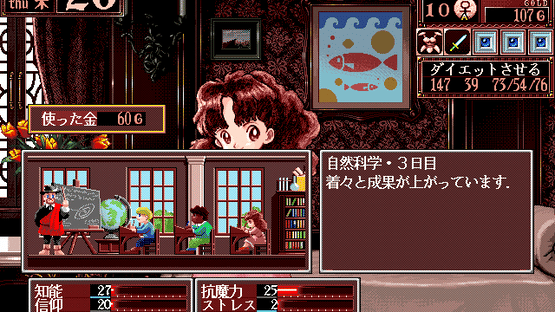 In this fantasy game, the player takes role of a war hero who raises a girl to the age of 18. At the end of the game, the daughter goes into a line of work; what this work is, how much talent she has for it, her marital life, and her overall happiness all depend on the player's actions.