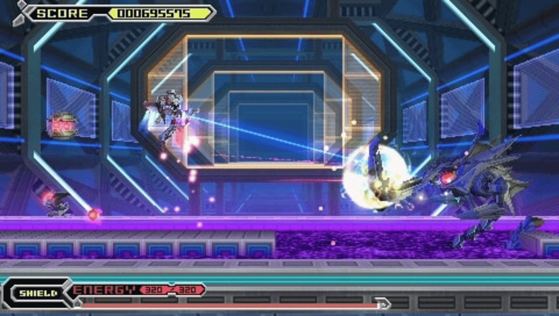 During a routine survey, the interstellar weapons platform Laevina detects Nedium, an asteroid of unknown origin, and soon finds itself in the grip of the planetoid's ultramagnetic field. Shipwrecked atop an impregnable fortress of rock, the starship turns to its last resort--the Hyper Dual Armor prototype Thexder.