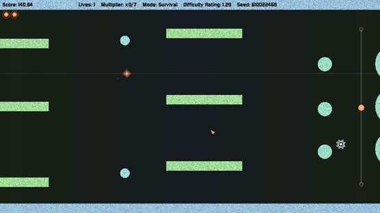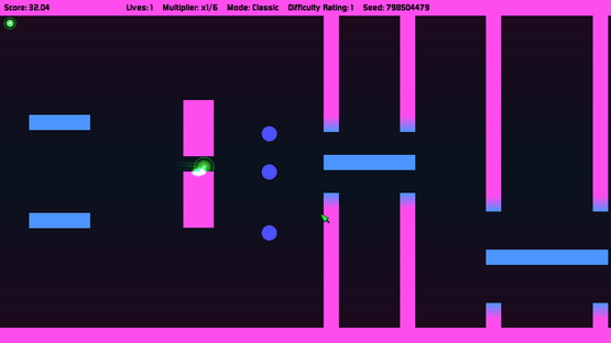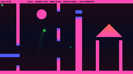 The rules of Void Wisp are simple: Gain points by getting close without crashing. Lose points by playing it safe. Distance isn’t important. Simple controls and custom game options means anyone can pick up and play this high score focused ambient runner.