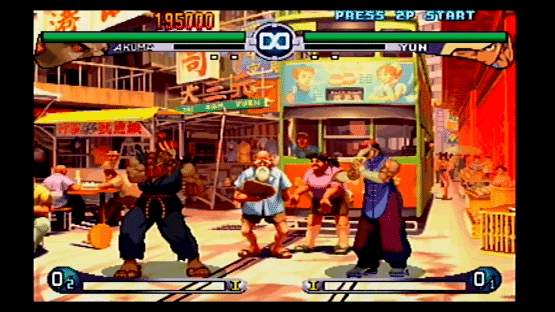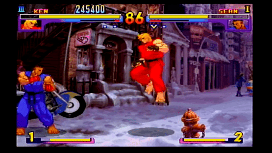 Street Fighter III: Double Impact is a compilation containing the original Street Fighter III and 2nd Impact. It features an Arcade, Versus, Training and Option Mode for both games and a Parry Attack Mode in 2nd Impact where the player gets to test his parrying skills in the game's bonus round. This compilation also allows players to use Gill and Shin Akuma (in 2nd Impact only) who were exclusively computer-controlled characters in the arcade version.