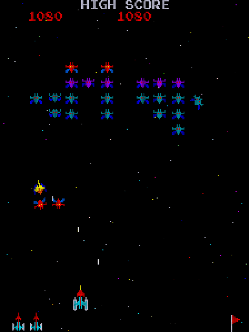 Galaxian is a shooter arcade game developed by Namco in 1979. It was released by Namco in Japan and a few months later by Midway Games in North America. The game was developed to compete with Taito Corporation's Space Invaders, released a year earlier, and featured a similar space theme. The player controls a space ship in the bottom part of the screen and shoots at enemies descending from the top of the screen. The game was received very well by the public and has continued to be a game with a competitive community to this day. It was followed by a successful sequel called Galaga in 1981 and two less known sequels called Gaplus in 1984 and Galaga '88 in 1987. Galaxian was one of the most popular games in the golden age of arcade video games.
