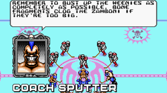 Hockey with an attitude! It's mutated mayhem on the ice in the wildest, funniest, goriest game ever. 23 wild mutant teams and 23 unique arenas, each with bizarre obstacles like exploding mines and ice pits. Call nasty plays like exploding pucks and rocket packs. Set the level of gory action, then watch the body parts go flying. Unique rules like bribing refs, funny penalties, and 2-point bonus goals. Use wild weapons: axes, sledgehammers and chainsaws. Two types of nets - Standard and Battle (protected by spikes). Substitute tired goalies with the "Demon Net."