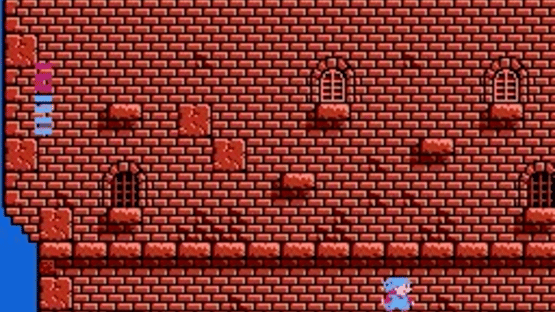Guide Milon through the four levels of Garland Castle in his quest to reach the top floor and vanquish the big boss! The journey is a difficult one though, because the castle is locked up tight and Milon doesn't have the keys. You will have to use your bubble attacks to fend off the castle baddies while busting up every block in sight trying to find all of the hidden treasure and other secrets throughout the game. Unlike most platformers, Milon's Secret Castle is less about defeating all of the enemies in an area, and more about scouring every bit of each room to find the secrets that lie within Garland Castle! Milo can uncover practically anything in the game. This includes: items, power-ups, money, shields, keys, level exits, even shops! The only way to get to each level boss is to find the right secret items!