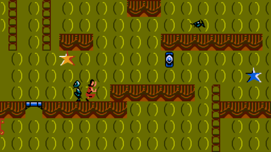 Dash Galaxy in the Alien Asylum was an action game for the Nintendo Entertainment System released in 1990 exclusively in North America. Players take the role of Dash Galaxy, a space scout who has been captured by a hostile civilization. Gameplay involves a series of floors with several rooms each. Keys must be collected to progress to higher floors and, eventually, an escape ship. Dash's only weapons are a limited supply of bombs and remote detonators. Good timing is crucial to completing the game, requiring navigation of trampoline jumps and roaming enemies. While the rooms are side-scrolling action puzzles, the floors have a overhead view and include more difficult block-moving puzzles which can fatally trap a player.