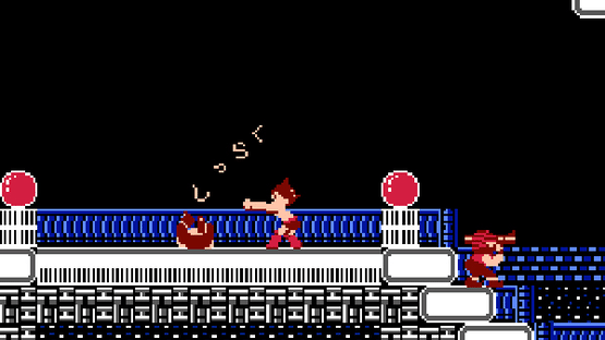 Tetsuwan Atom is an action game developed by Home Data and published by Konami for the Famicom in Japan early on in 1988. The game stars Tetsuwan Atom, a popular early anime character who is better known as Astro Boy outside of Japan. Tetsuwan Atom was originally created in 1951 by Osamu Tezuka. The successful series started as a comic strip and was turned into a black and white animated series in 1963. It was one of the first (if not the first) animated TV series produced in Japan, and has influenced countless Japanese animated series that followed. The little robot-boy is one of Japan's most recognizable character. The story takes place in the future, at a time where humans and robots live together in harmony. The powerful robot-boy Atom lives with Professor Ochanomizu, an old scientist who takes good care of the little robot, and helps him fight crime and injustice. One day, burglars break into Professor Ochanomizu's lab and steal all of his money. It is now Atom's duty to recover the stolen loot.