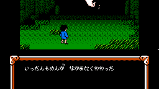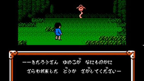 GeGeGe no Kitaro 2: Youkai Gundan no Chousen is a RPG game based on a manga and anime from Japan about a boy who is a youkai, a class of spirit-monster to which all of the main characters belong. The main character, Kitarou, is the last living member of a Ghost tribe. He is missing his left eye, but his hair usually covers the empty socket. He fights for peace between humans and yōkai, which generally involves protecting the former from the wiles of the latter. While the game follows the release of GeGeGe no Kitaro: Youkai Daimakyou (released in the U.S as Ninja Kid), it is not a direct sequel to the original game, which is an action side-scroller. GeGeGe no Kitaro 2 plays very much like a simplified traditional RPG. Fights are turn-based, where the player must input his command, and then watch the sequence of event play out until the round is over and the next round begins. However, even though it is simplified, it is actually a rather difficult and challenging game. In the very beginning of the game, Kitarou struggles to survive more than two fights against monsters before needing to return home and rest until he reaches level 2. A majority of the enemies only provide experience points in the single digits until much later in the game, although to compensate, the amount of experience needed to reach each level is low by comparison as well. Kitarou maxes out at Level 10 when he reaches 999 experience points. The map of the game's overworld is a fairly faithful representation of Japan, along with part of Korea and a small unidentified island. Kitarou must explore the island nation to rescue his girlfriend and the rest of the world from the onslaught of evil Youkai that threaten to take over the world of the living. He must locate several homes, castles, and cave entrances to make his way through Japan, which suffers from spirit storms that prevent him from exploring new regions on the island until some task has been completed first.