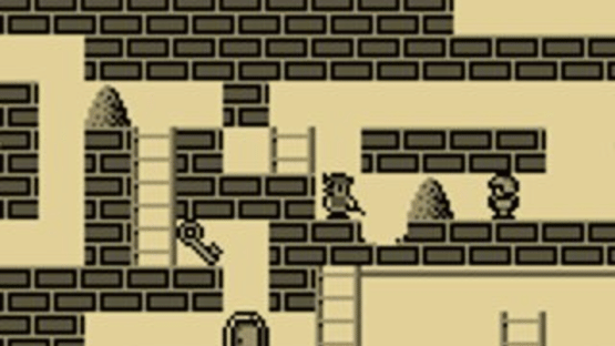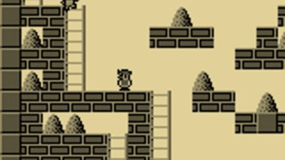 Your objective is to gather gold that is scattered on the brick platforms, which are connected by ladders. You are chased by robots (cyborgs) that end your character's life if they catch him, though you can stand on their heads. Your main weapon is the ability to dig both to the left and right of your character. The holes you dig are only temporary and fill themselves in. A robot that falls into one of your holes will be destroyed if the hole fills in before it can escape. Your character can also suffer this same fate, ending his life. Destroyed robots are replaced with new ones that appear from the top of the screen. The robots can also carry gold which they drop if they fall into a hole. The robot's movements are dependent on yours, and a significant facet of the game play is figuring out how to use the robot's movements to your advantage in clearing a stage. Besides bricks and ladders, levels also consist of blocks (which can't be dug into), rope (to traverse platform chasms) and crumbling bricks (which you fall through). Once all gold has been retrieved a missing segment of ladder will appear allowing your character to escape to the next level. Some levels contain keys and doors which provide an alternate way to leave a level.