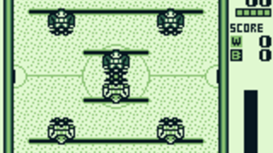 Each team has eight players (one goalkeeper, two attackers/defenders, and three midfielders). When the player moves a row, all of them are moved at once unlike on an actual table soccer set. Rows cannot be moved in an upward or a downward position; only from left to right. Stopping the ball and performing powerful shots is only one aspect of the game. Players can also incapacitate one of the opposing players on a well-timed shot. A tied game results in a penalty shootout. Three different surfaces are available. Players can practice without a computer opponent and a spectator mode allows newcomers to see two computer-controller opponents face off.