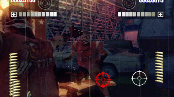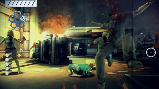 Overkill is a rail shooter, with pre-determined character movement, while the shooting element under player control by pointing the Wii Remote at the screen, moving the aiming reticle. The player can point the reticle near the edge of the screen to move the camera angle slightly in that direction, allowing a further field of view known as "Danger Cam". The story mode can be played solo or with another human player, with one weapon or dual-wielding controls.