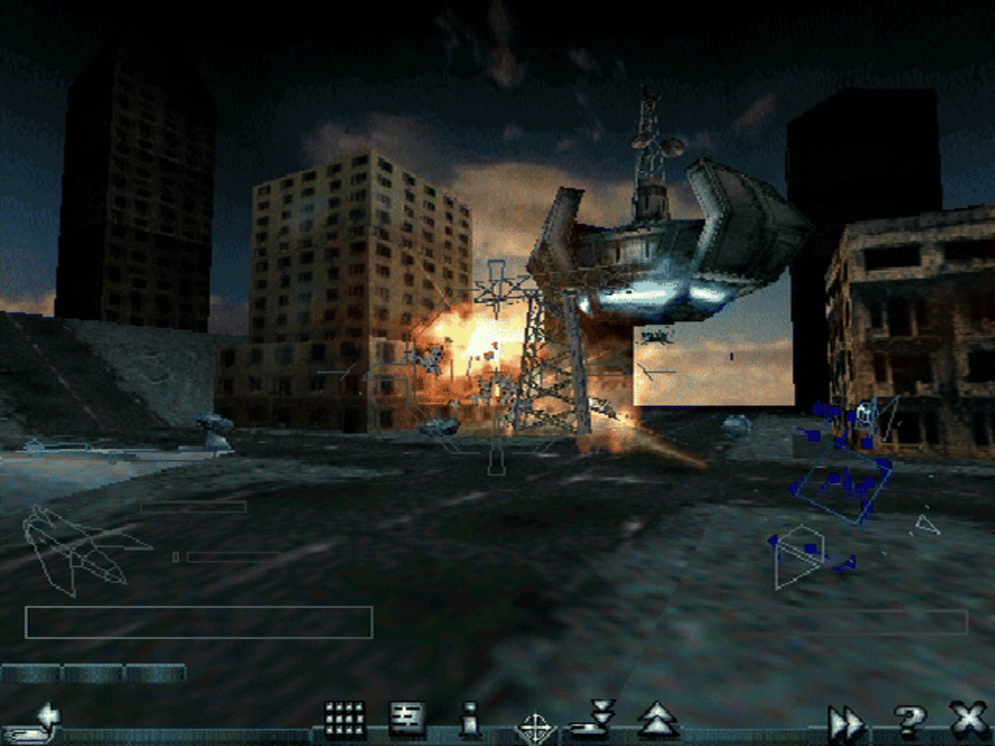 Urban Assault is a 3D real-time strategy game that strongly encourages direct control of the units in a first-person shooter fashion. The strategy part is almost entirely focused on the creation and management of units, with the construction element being limited to power stations and a few other buildings like radars and turrets. The output of a power station, which is used for creating units as well as for protecting and moving the command station, is proportional to the number of territories controlled by the faction.