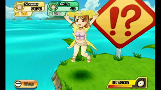 Daddy, Mommy, Sarah, and Billy make their return as pirates sailing the seas and skies! Roll the dice and sail through the islands to gather the treasures each island holds. The person with the most gold at the end wins! Family Pirate Party shines with its appealing cel-shaded graphics and endearing music. Challenge up to three other players, be they friends, the CPU, or both, for some four-player board-game fun. Do you have it in you to defeat your opponents and become the king of Family Pirate Party!?