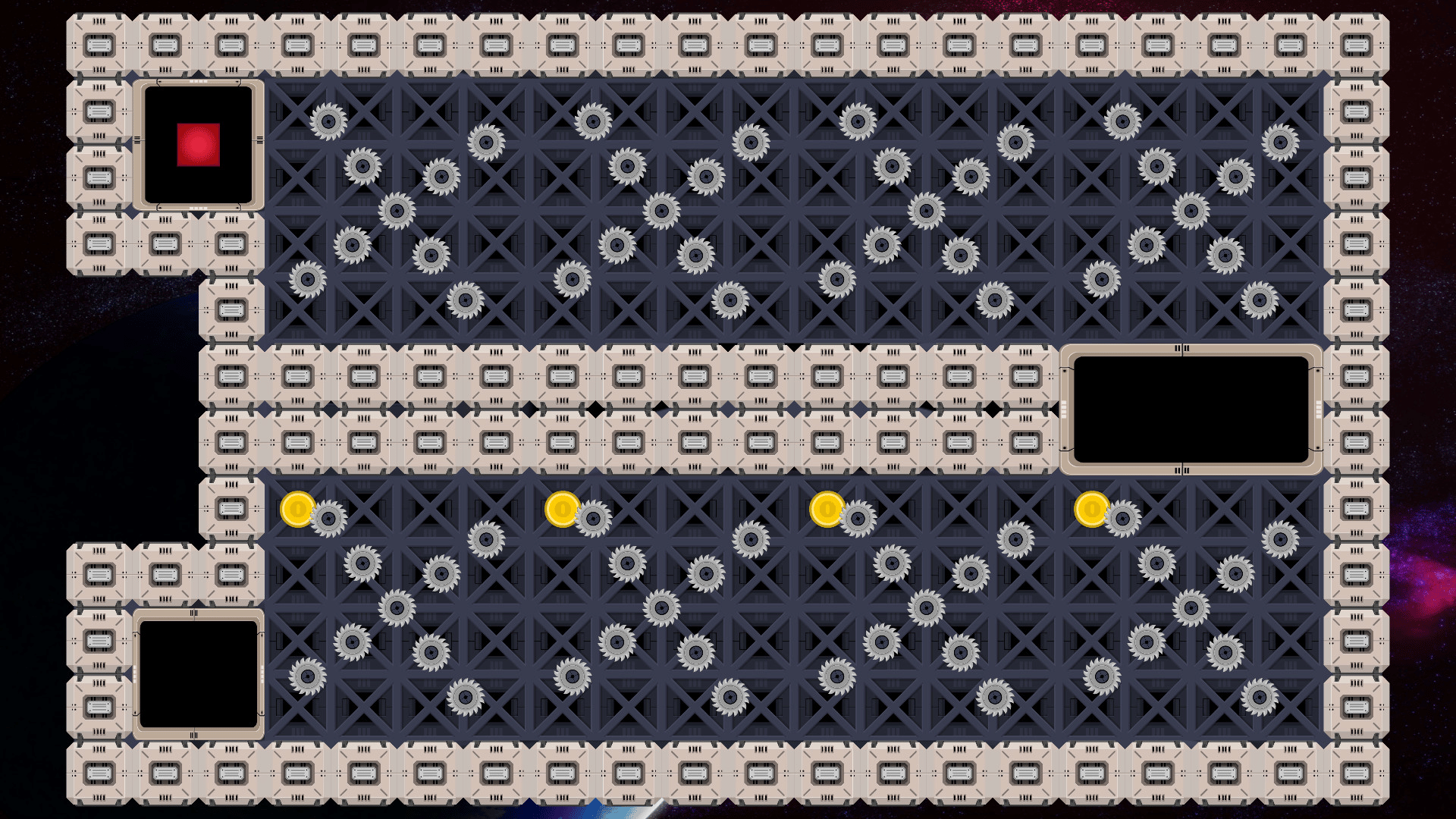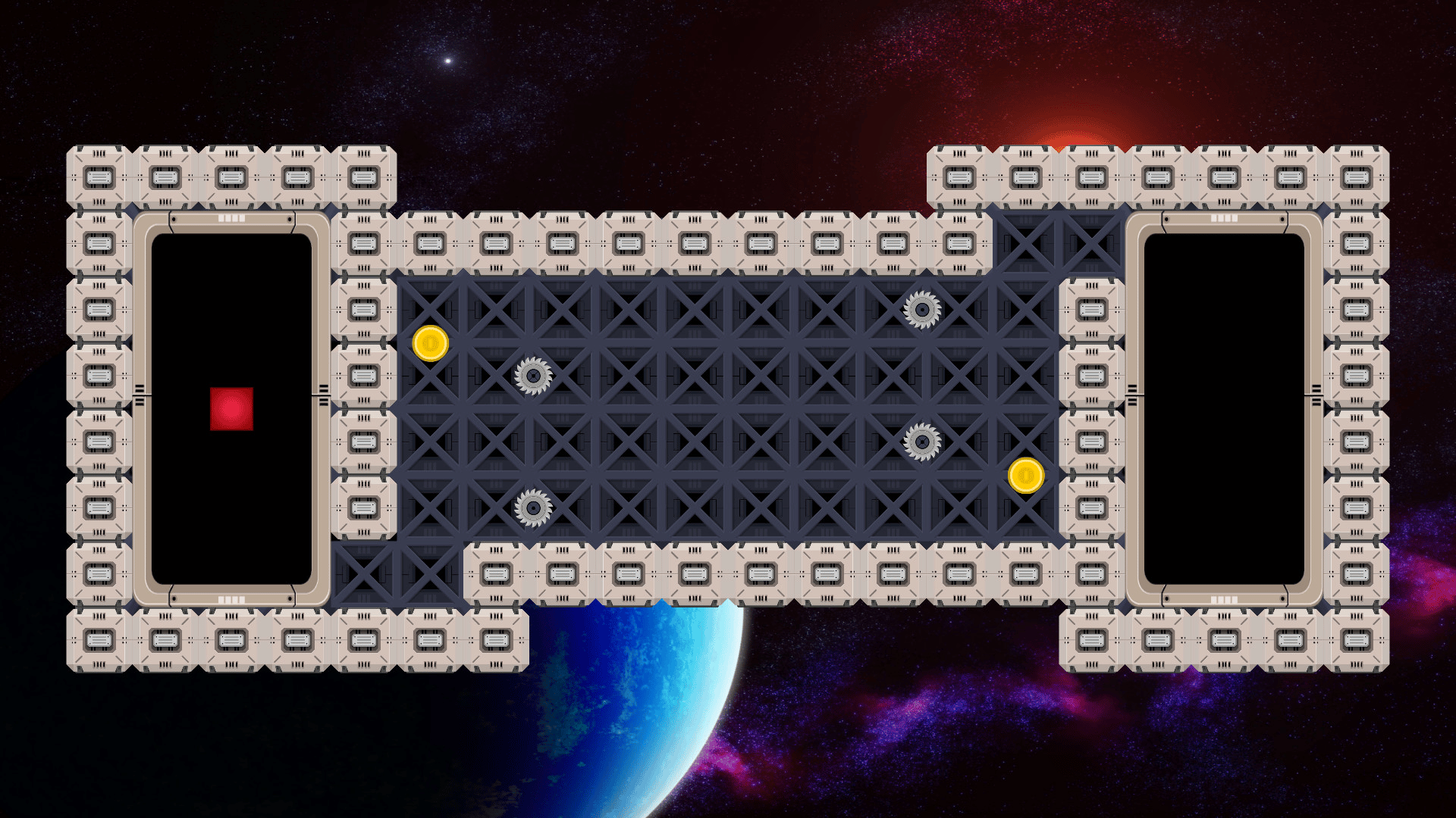 You play for a character of the most popular games - the big red cube. Your task is to collect the coins and to get to the exit avoiding the circular saws.