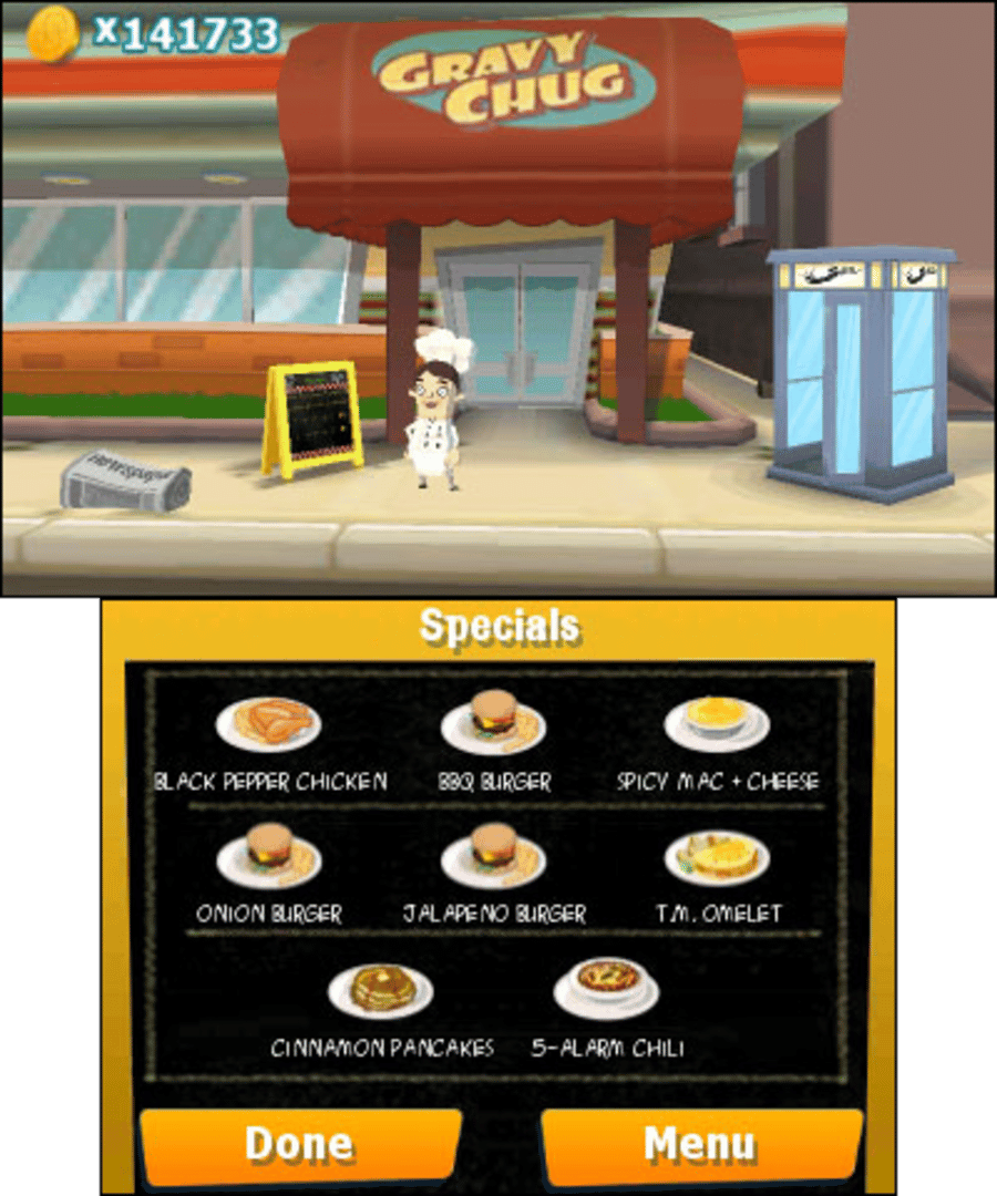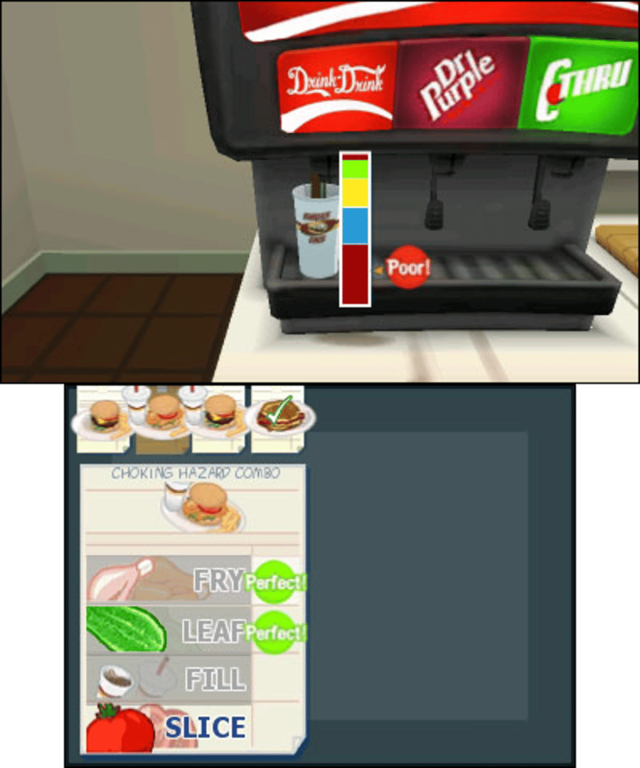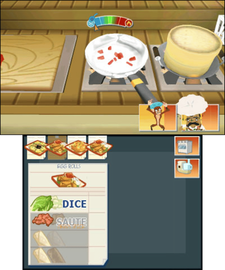 In Order Up!!, players get to experience the dizzying life of a top-notch chef and restaurateur as they prepare all types of food, serve hordes of demanding patrons, and build their own restaurant empire from the ground up. Beginning in the world of fast food, new cooks must prove themselves by serving up quality dishes in the time allotted. As they master the basic skills and serve up tasty dishes using precision and time management skills, they will earn more money and move from fast food to five-star!