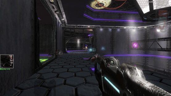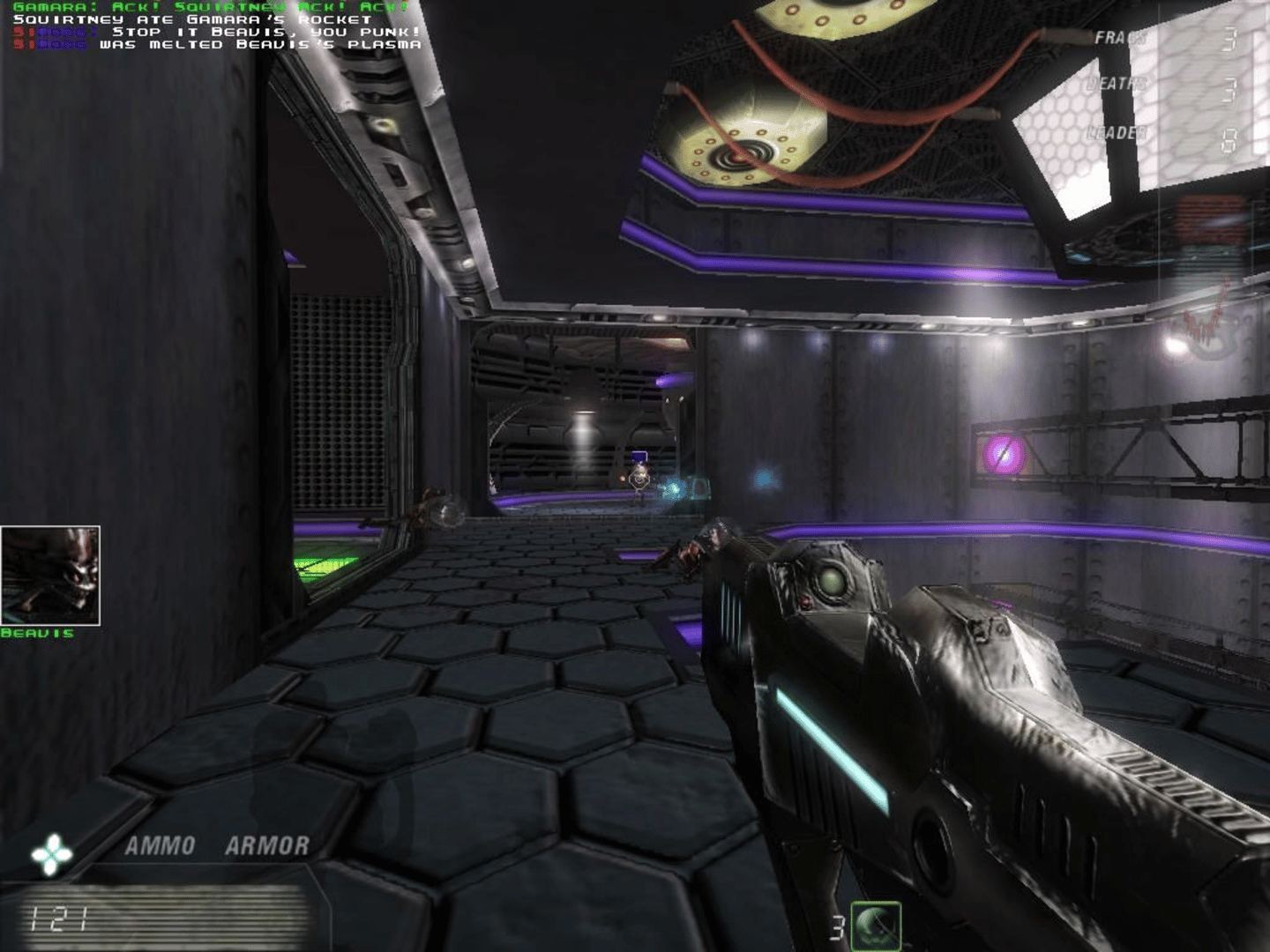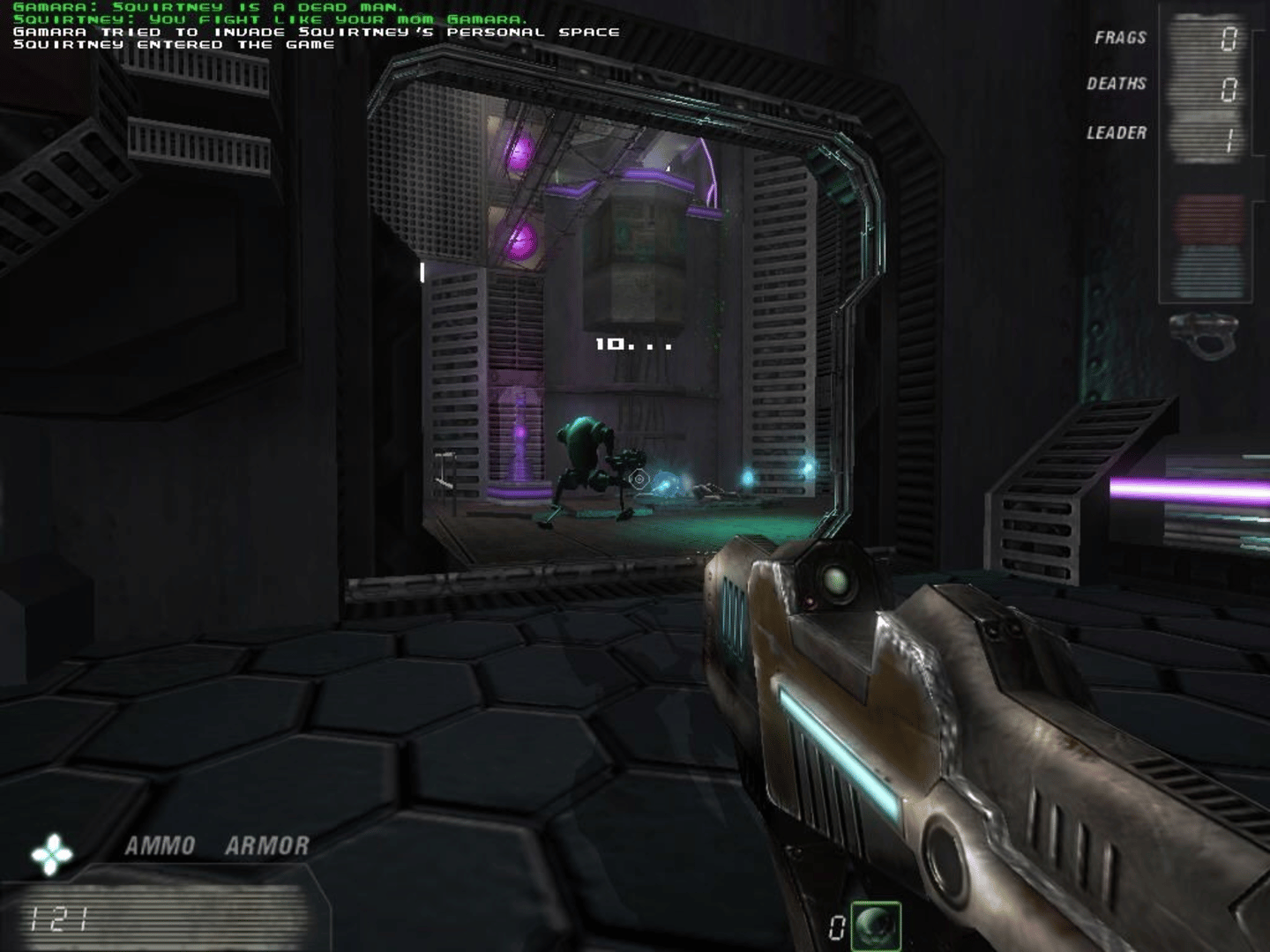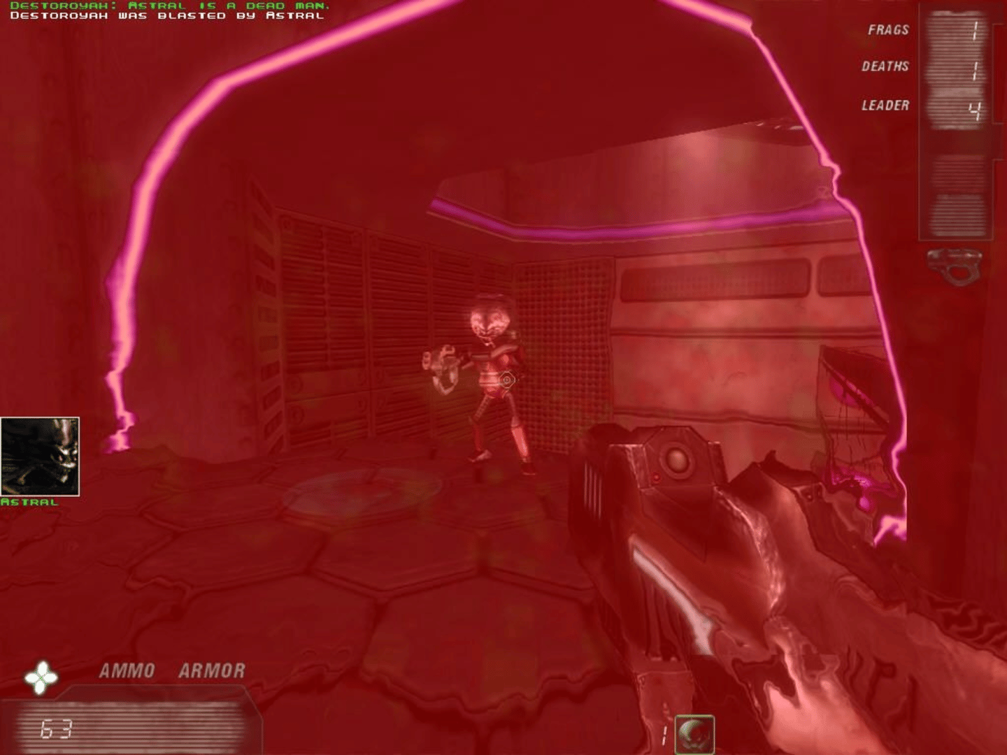 This free standalone multiplayer deathmatch game has a retro sci-fi look to it. The game takes place in the distant future as a war rages between big-brained Martians and Robots. It uses the GNU General Public License of the id Tech 2 engine. There is also single player through the use of configurable bots. The first release featured 5 player characters, 10 levels, and 9 weapons (both of alien and human nature). It featured vertex lighting on models, textured particles, stainmaps, and hi-res full color textures and skins. The HUD shows player deaths and high scorer at all times. All source code was released with game. Version 2.0 added three brand new 1vs1 tourney levels, scripted shaders, quad and invulnerability shell effect added on weapon model and glass effects (helmets, tubes, etc) and intermission sequences were improved.