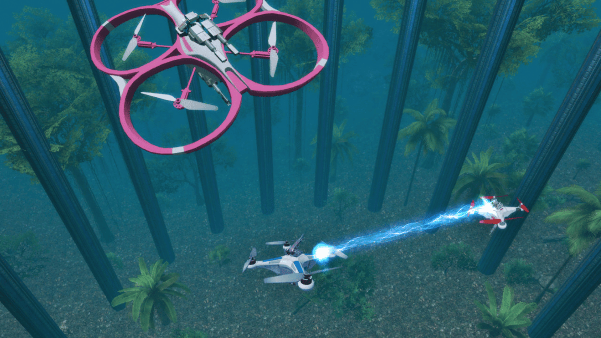 "Multiplayer deathmatch games with drones! Enjoy fast multiplayer action with your drone in Deathmatch and Team Deathmatch competitions in exotic arenas." Arena supports playing both with and without VR.