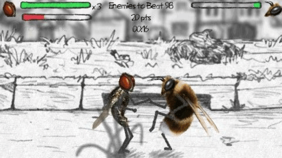 A side-scrolling beat-em-up with insect characters and a hand-drawn bugs graphical style.